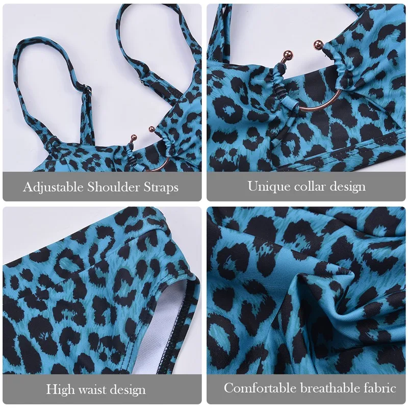 Женский сексуальный комплект бикини с высокой талией, кольцо леопард, купальник, купальники из двух частей, бикини с пуш-ап, черные купальники с подкладкой, пляжная одежда