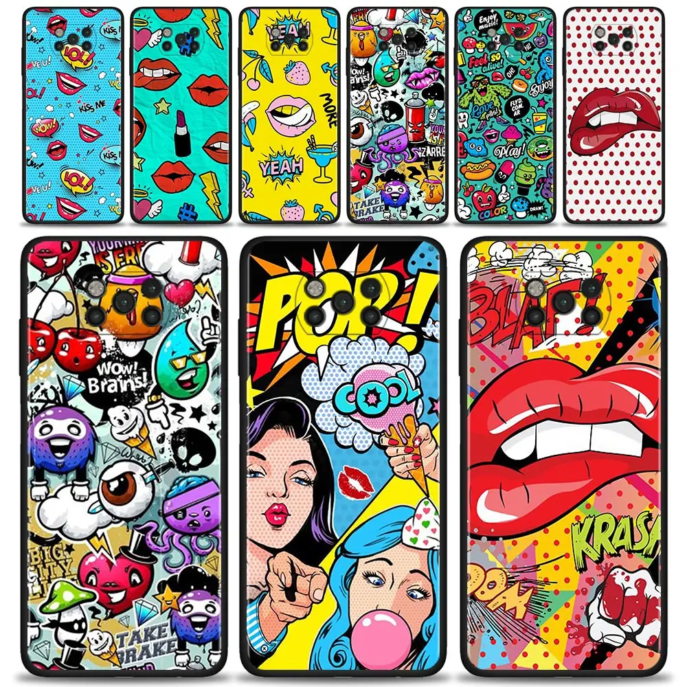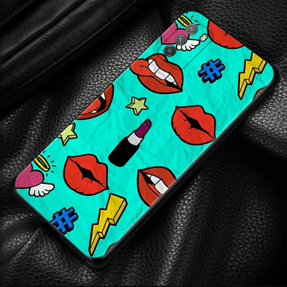 Чехол для Xiaomi Poco X3 NFC F3 GT M3 M4 Pro Pocophone F1 Note 10 11 10T Lite 11T Pro 9T Обложка Горячая Аниме граффити губы наклейка