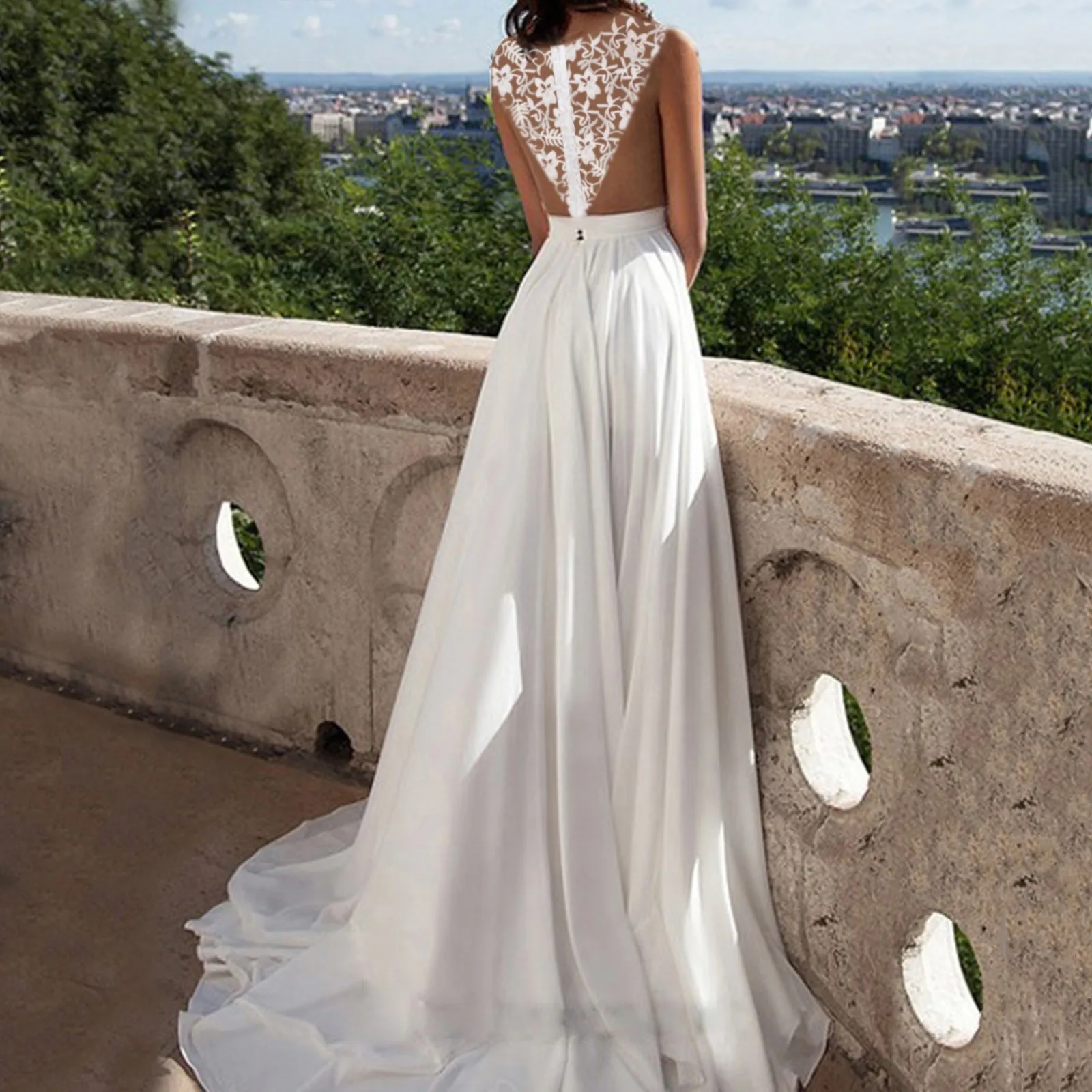Женское свадебное платье, кружевное вечернее платье с v-образным вырезом, свадебное платье, Пляжное свадебное платье