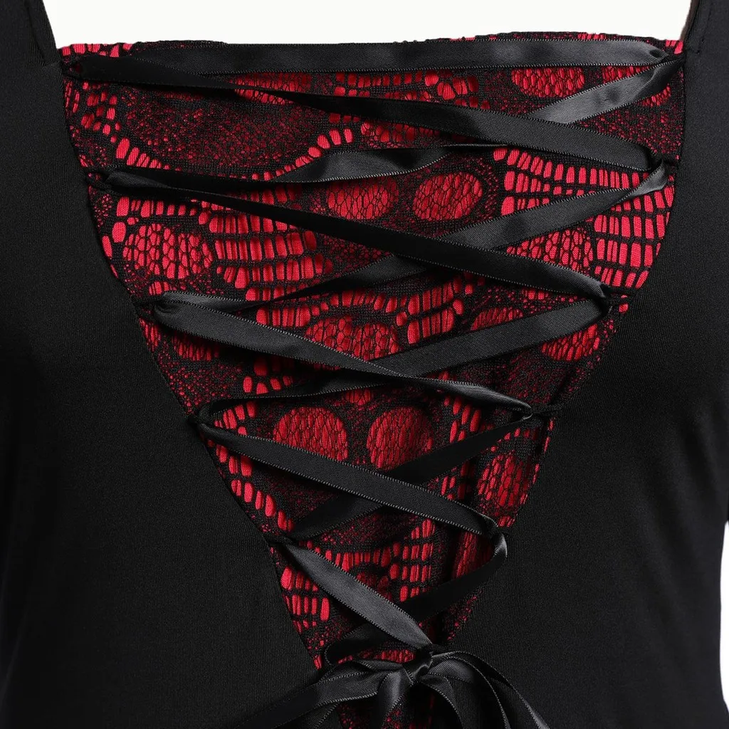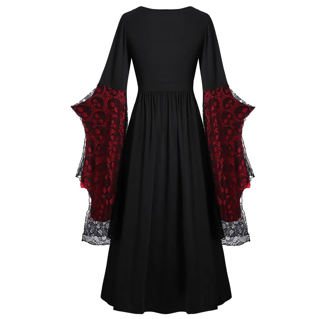 Womne размера плюс Череп кружева колокольчик рукав Модное платье