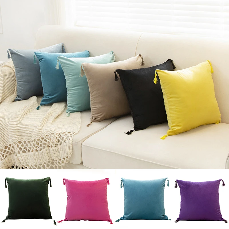 Бархатная наволочка 40*40 см с кисточкой, однотонная квадратная нав...