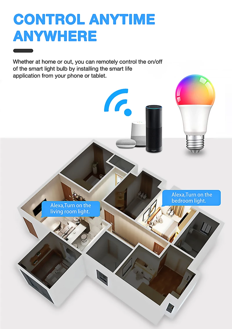 5. Энергосбережение и срок службы: 9 Вт 850lm умная лампа с базой E27, эквивалентная 90 Вт традиционным лампам накаливания. Экономит до 80% энергии, дольше и экономит энергию.