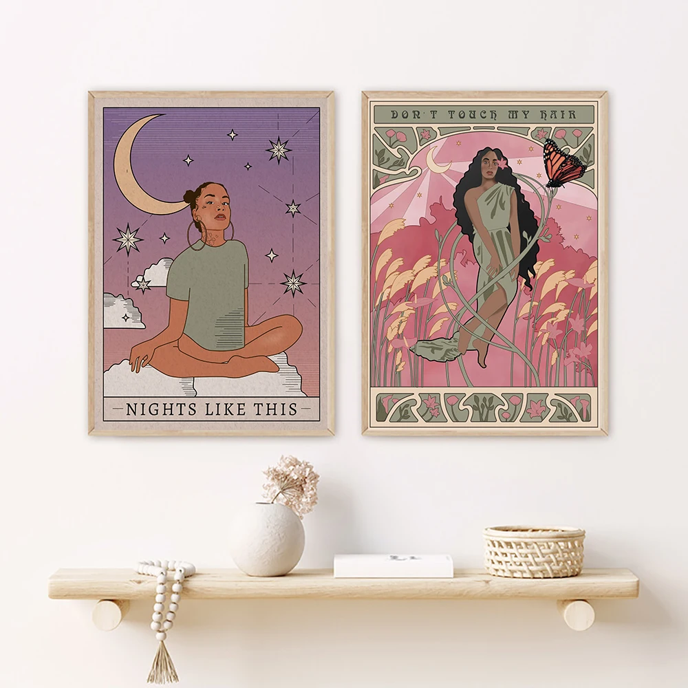 Настенный постер в стиле бохо, Картина на холсте с изображением дев...