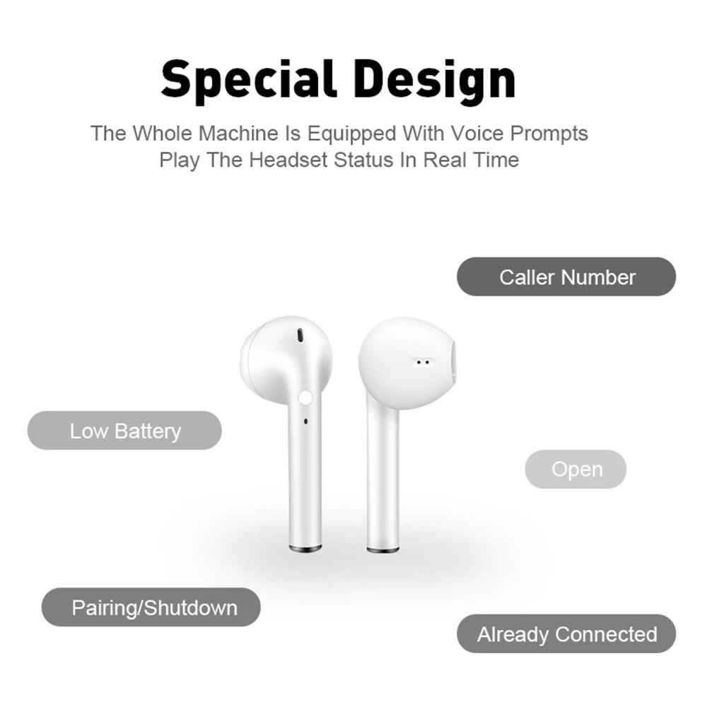 Описание товара:Название: bluetooth-наушники I9S TWSЦвет: белые беспроводные наушникиМодель: беспроводные наушники + стерео высокая точность + Громкая связьМодель: для iPhone X XS Max XR 6 6S 7 8 Plus наушникиМодель: для Samsung Note 9 8 S8 S9 Plus S6 S7 Edge наушникиМодель: для Xiaomi Mi 8 Mi 9 SE Mi6 Mi5 для Huawei P20 Pro P10 PlusПодробности:Время работы: около 2-3 часовВерсия Bluetooth: V 5,0Чехол для зарядки: 300 мАчВремя зарядки: около 40-50 минутРабочее расстояние: около 10 мПосылка включает в себя:2 * Bluetooth наушники1 * зарядное устройство1 * USB кабель для зарядки1 * Руководство пользователяКак подключить наушники одновременно:(1) 2 головы нажмите и начните видеть красные и синие вспышки, а затем отпустите руку(2) 2 наушников будут автоматически соединены друг с другом, 1 из которых не мигает. Сопряжение успешно(3) в это время Включите Bluetooth телефона для повторного подключения к телефону.Функция кнопки: Длительное нажатие, включение питания, длительное нажатие, выключение питания, нажатие на музыкальную паузу/воспроизведение, ответ на вызов/зависание, двойное нажатие на следующую песнюПримечание: автоматически через три минуты без подключения гарнитуры к гарнитуре после загрузки.Советы по загрузке:Светильник для напоминания о зарядке наушников: Красный светильник для зарядки наушниковПодсказки для зарядки:1. Когда зарядное устройство заряжается, наушники: светодиодный светильник зарядного устройства всегда включен, и светодиодный светильник включен после того, как наушники будут заполнены.2. При зарядке Зарядное устройство: мигает красный светодиодный индикатор зарядного устройства, и красный светодиодный индикатор всегда включается после полной зарядки.