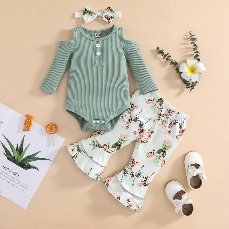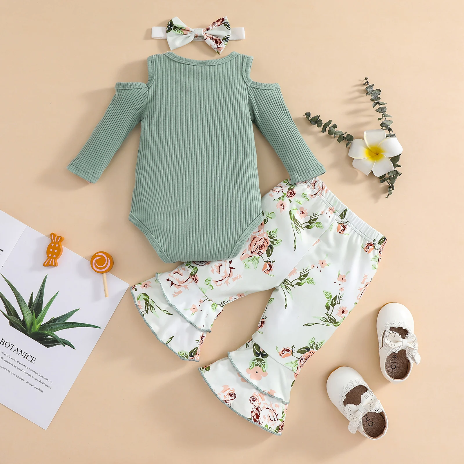 FOCUSNORM 3 шт. комплекты одежды для новорожденных девочек с открытыми плечами и длинным рукавом однотонный комбинезон + телефон 0-18 м