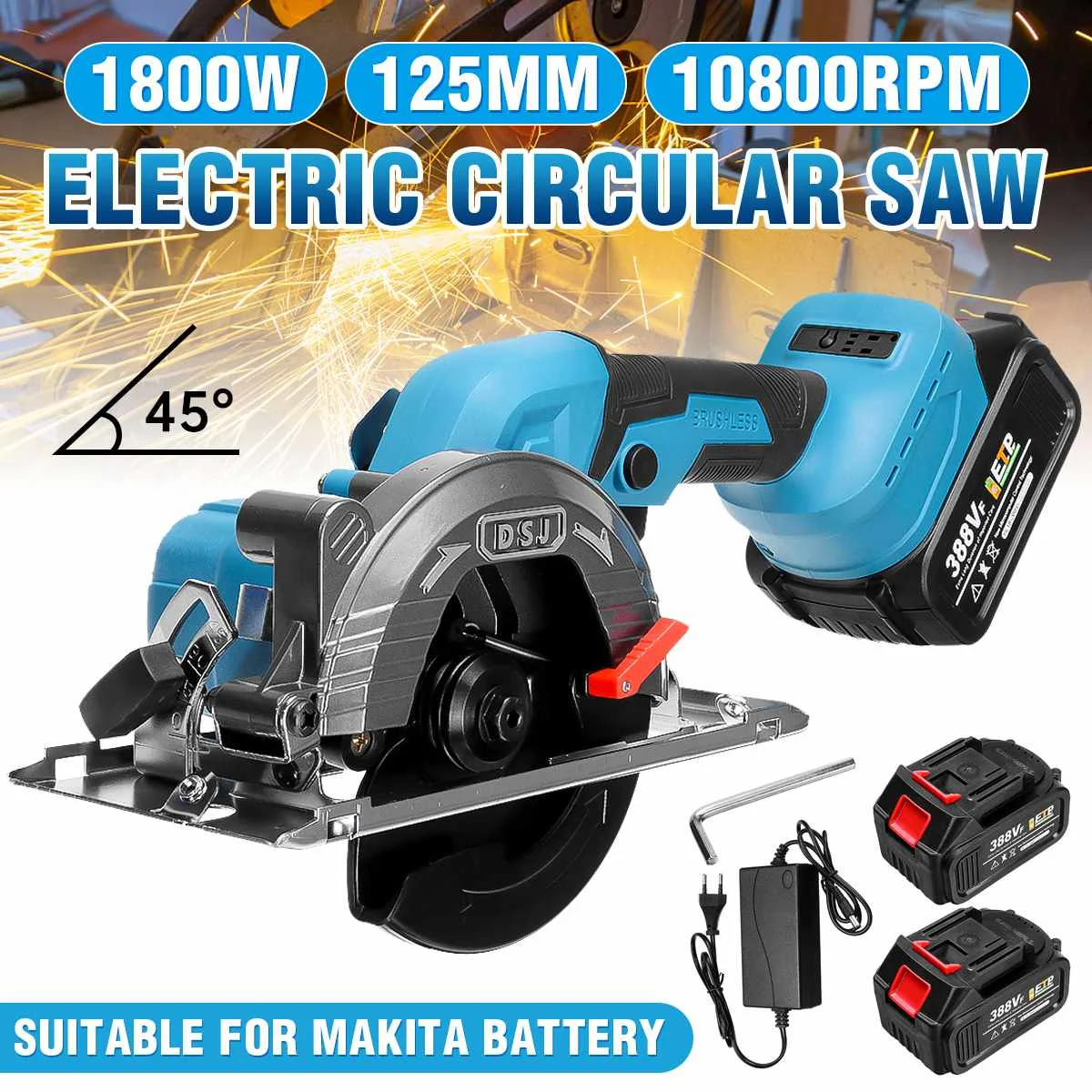 1800 Вт 125 мм бесщеточная электрическая циркулярная пила с ручкой 0-45 регулируемые электроинструменты для деревообработки режущие инструменты для Makita с батареей 18 в