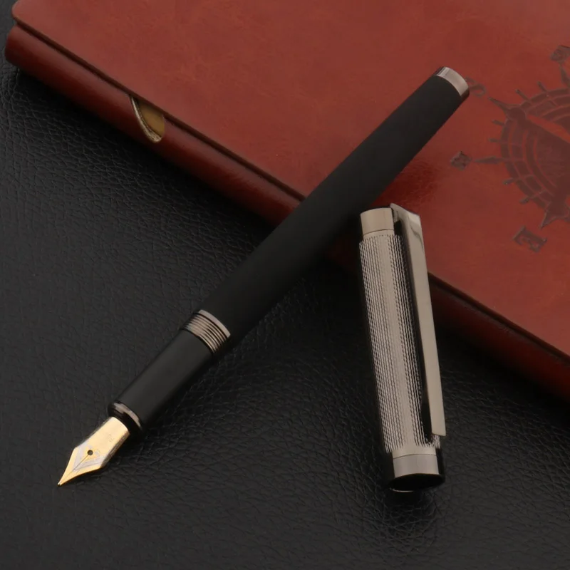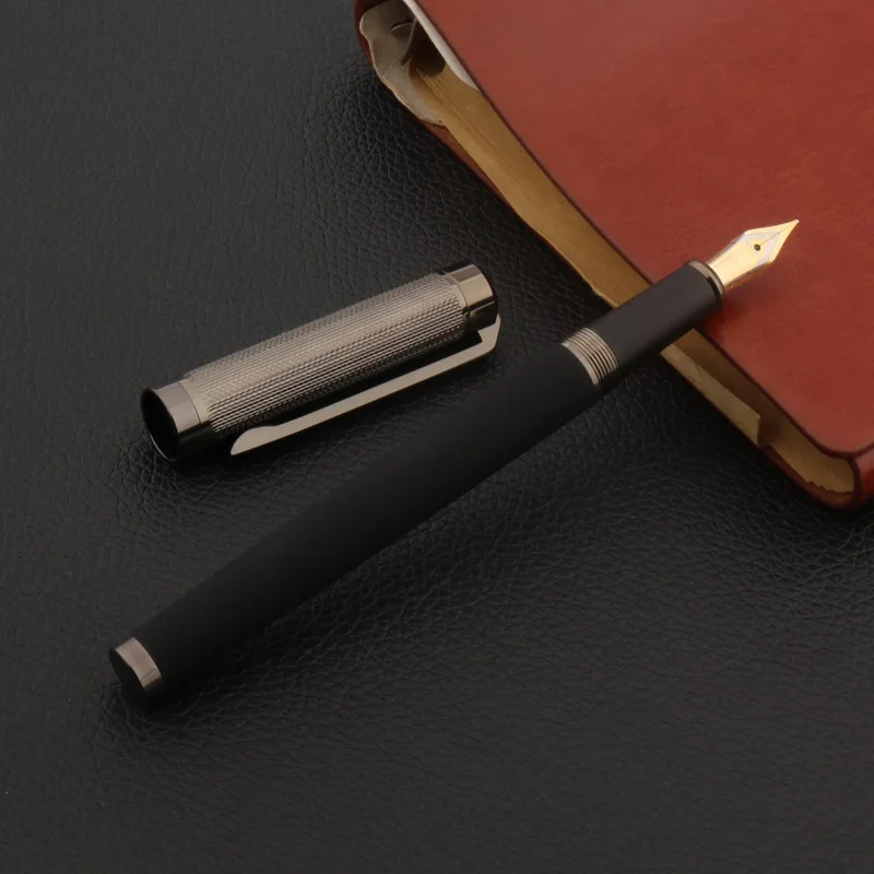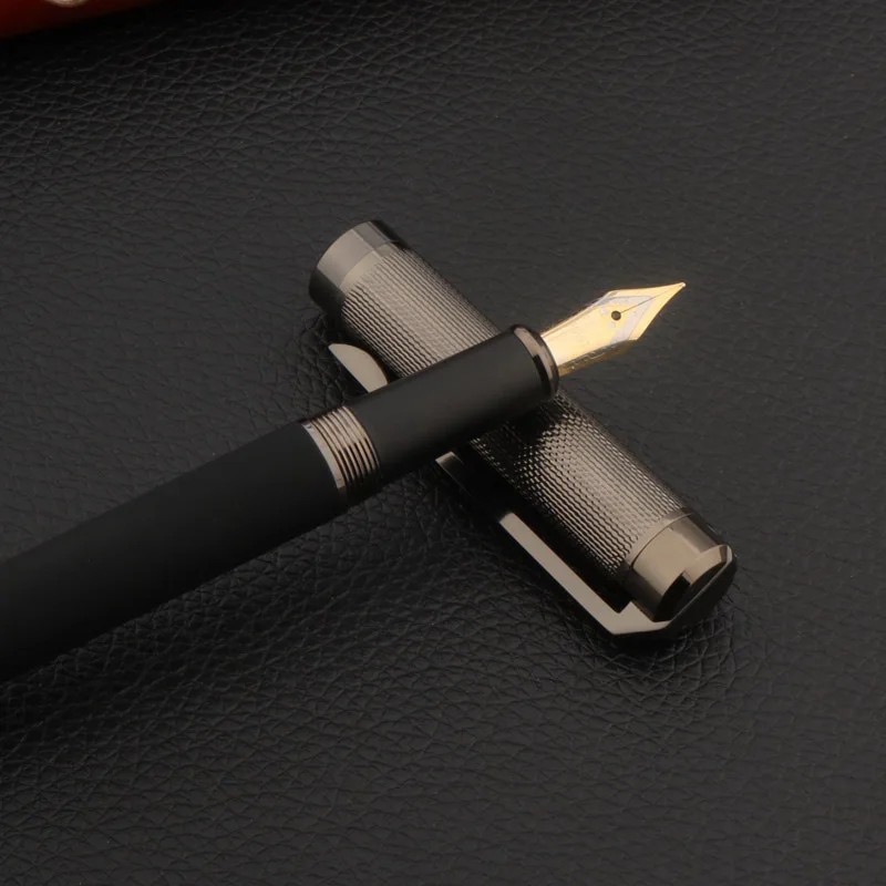 Ручка перьевая матовая черная, металлическая кожаная ручка EF, серого цвета, Канцтовары для школы и офиса, чернильные ручки