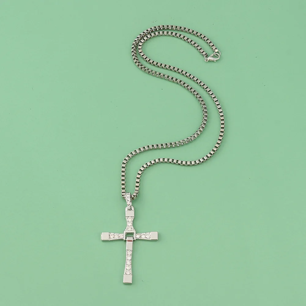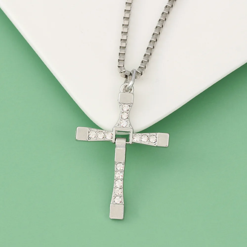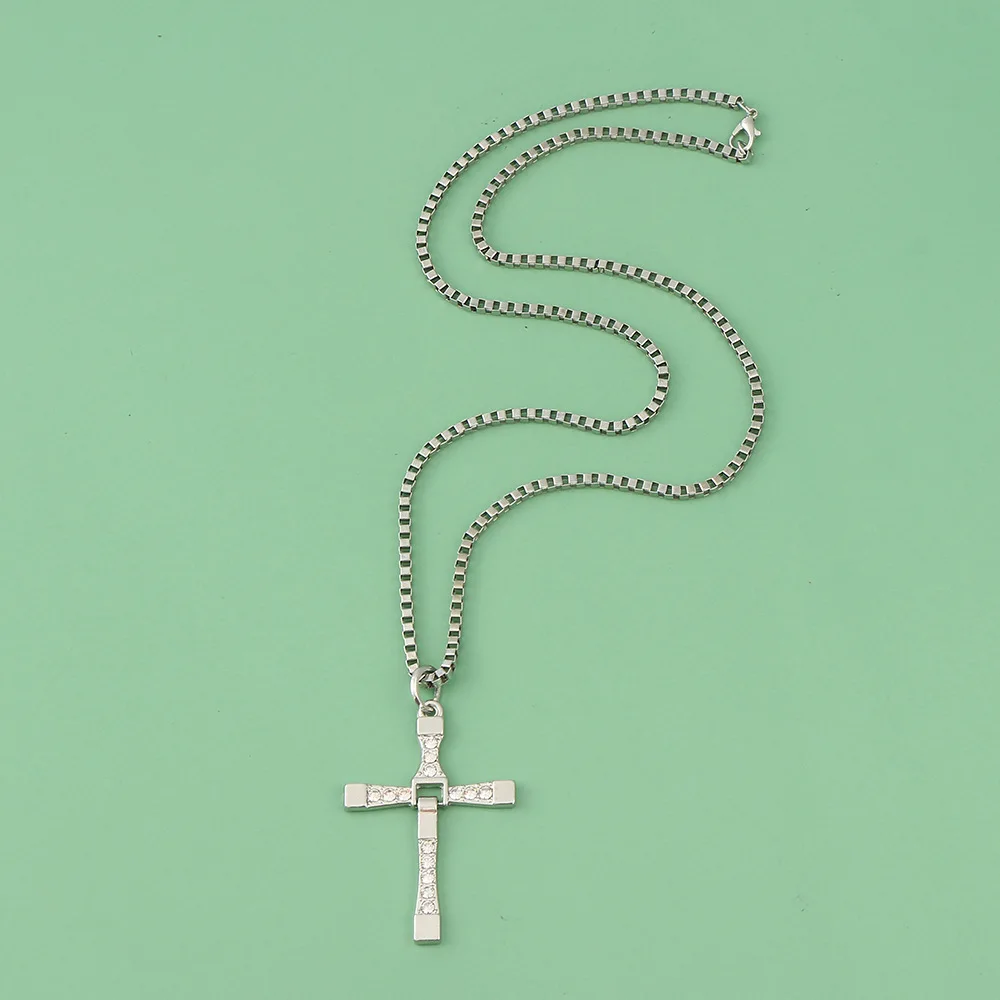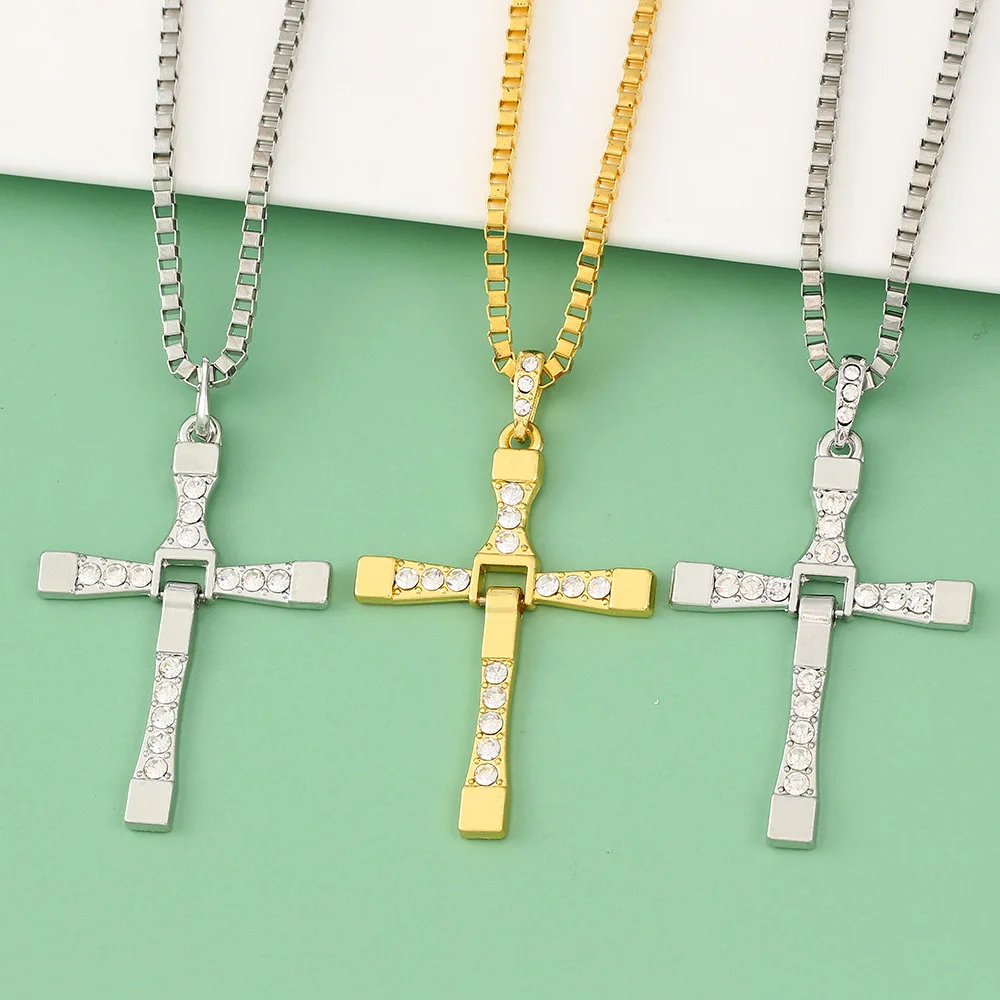 Ожерелье с крестом из фильма Форсаж 7, колье с подвеской-крестом с кристаллом Иисуса для мужчин и женщин, подарочное ювелирное изделие для пар, цвет золото и серебро