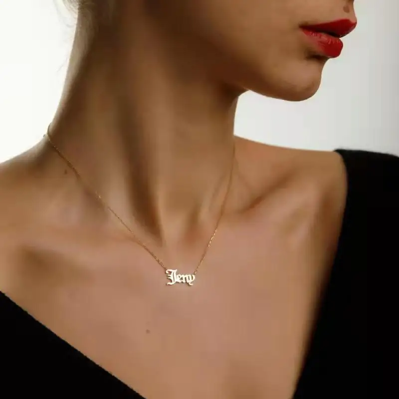 Название: заказное старинное английское имя ожерелье из нержавеющей стали о-цепочка Золотое колье персонализированное готическое ожерелье для женщин подарок на день рождения