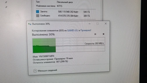 Подключал как внешний ssd по usb 3.0. копировал содержимое другого ssd (игры, фильмы). Забил почти полностью скорость меня устраивает (см. скрины), ранние файлы открываются. Скорость не падает от забитости диска или кэша, хотя при копировании programm files скорость буквально 0,5- 40 МБайт/с (скорее всего защитник windows предварительно проверял файлы на вирусы). В МО доставлено за 20 дней.