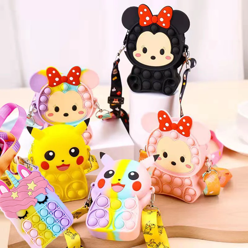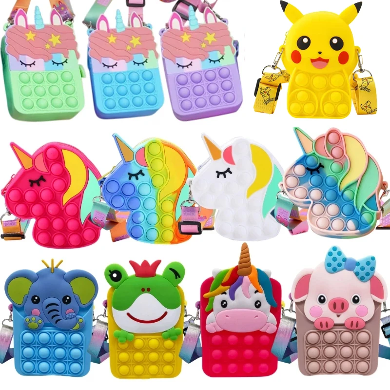 попить Новый Единорог Pokemon Pikachu Fidget Toys сумка через плечо Pop It Kids уменьшить давление Popit Toy силиконовые Push Bubble Kawaii сумка подарок