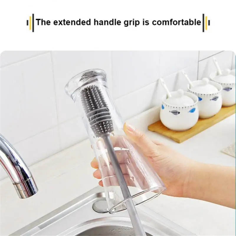 Силиконовая щетка для чашек, приспособление для очистки стекла, кухонный инструмент для очистки, длинная ручка, стеклянная бутылка