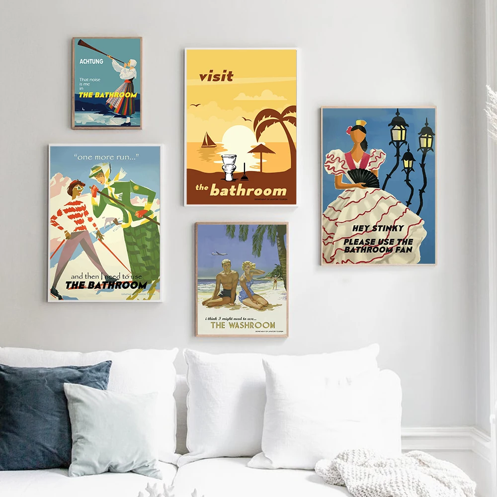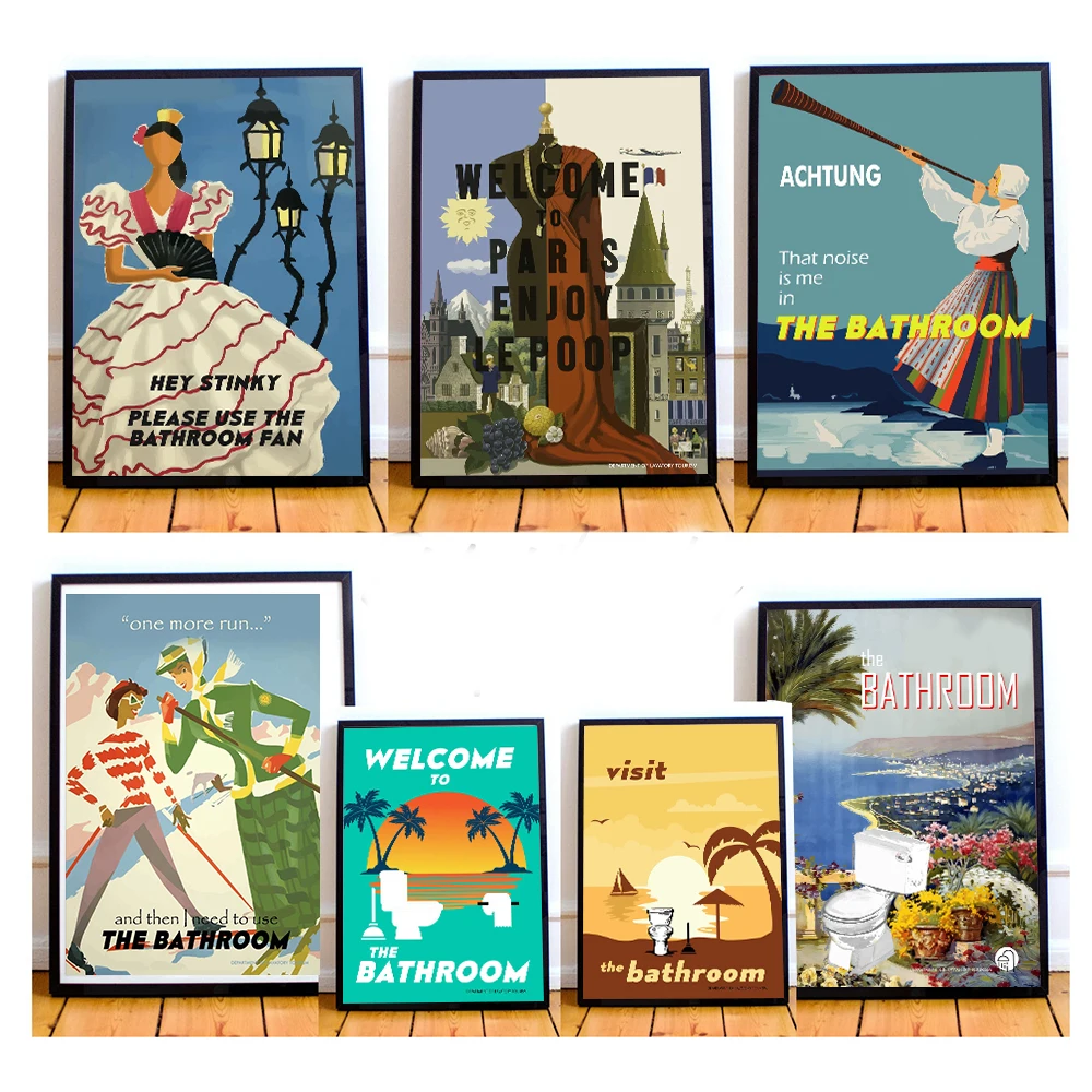 Настенные художественные плакаты с забавным принтом в ванную комнат...