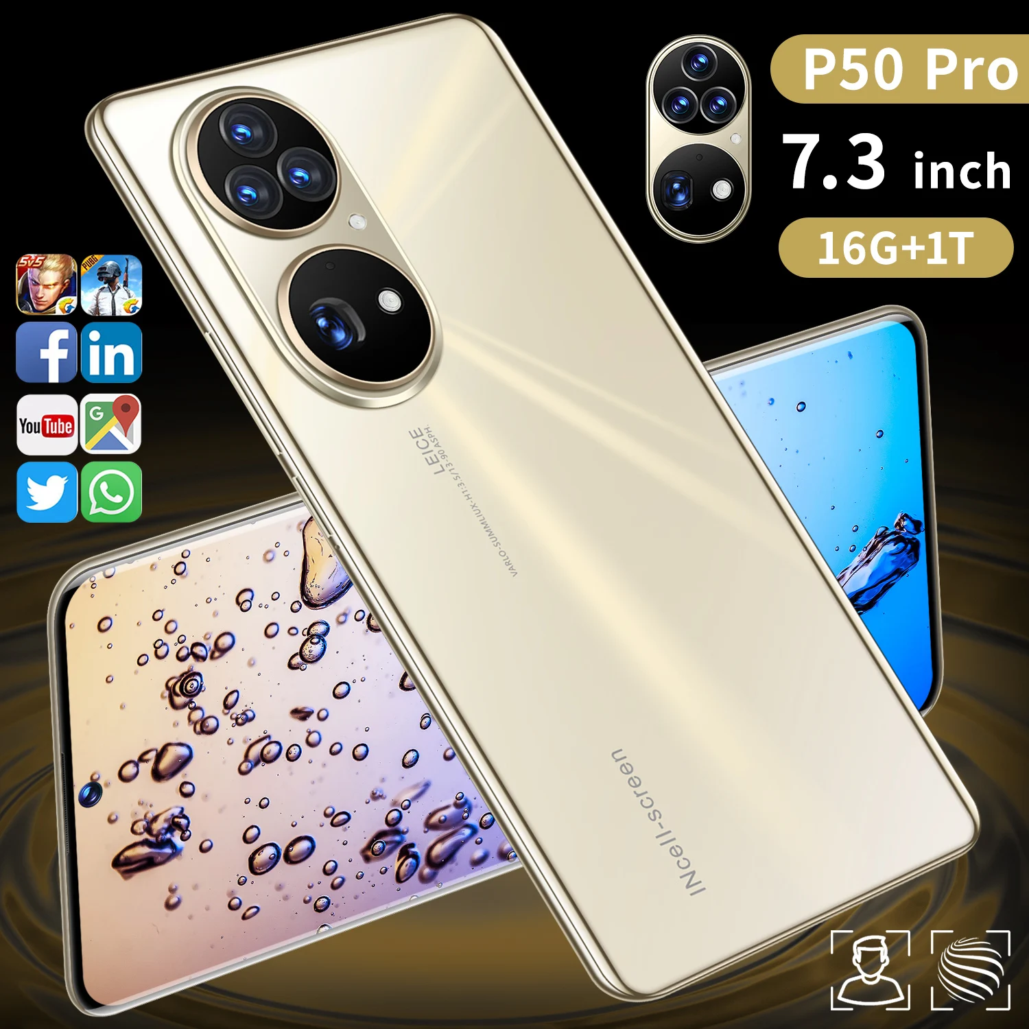 Сотовый телефон P50 Pro, 2022 дюйма, 10 ядер, 7,3*2400, 16 ГБ + ТБ, 32 Мп + 64 мп, 3200 мАч, Android 12, сотовый телефон Qualcomm 888
