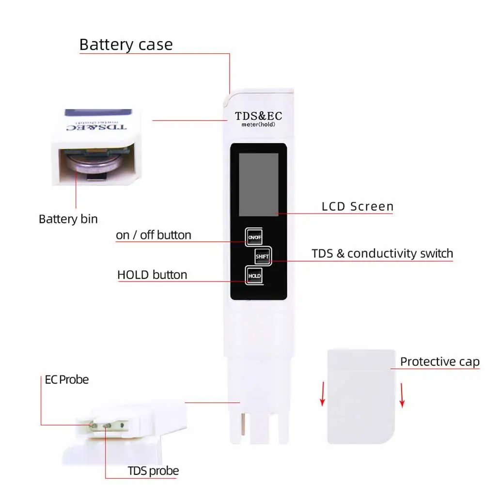 3 в 1 TDS EC измеритель, цифровой ЖК-дисплей, тестер воды, ручка, ф...