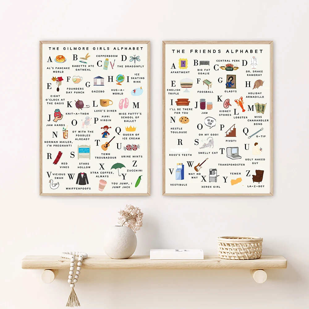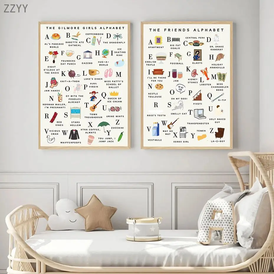Друзья, ТВ-шоу, алфавит, холст, панталоны, девочки, алфавит, АБС-бу...