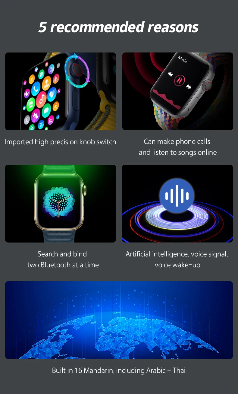 Основные функции【Функциональность: шаг. Расстояние. Калории. Пульс/кровяное давление/кислород. BT вызов. BT Music. Температура. Мониторинг. Мониторинг сна. Напоминание о звонке. SMS оповещения. Напоминание о сообщении в социальных приложениях. Напоминание о будильнике. Напоминание о малоподвижности. Спорт. Поверните запястье и блестите экраном. Ищу браслеты. Ищу телефоны. Удаленная фотография. Отказ от звонков. Не беспокоить. Переключение с несколькими циферблатами, WeChat.QQ.Facebook.Twitter. Линия. Whatsapp.Instagram, Скакалка. Запуск. Сидите. Настольный теннис. Баскетбол. Бадминтон. Альпинизм и т. Д.【Особенности 】:1. Ношение оборудования2. Сверхмощный чип3. Пульс. Шаг4.BT CALL.BT Music5. Пользовательские циферблаты приложения【Watch Languages】: упрощенный китайский. Европейские языки【APP Languages】: Английский Голландский русский французский португальский немецкий Испания Турция Польша малайский Чехословакия Арабский Тайский Италия