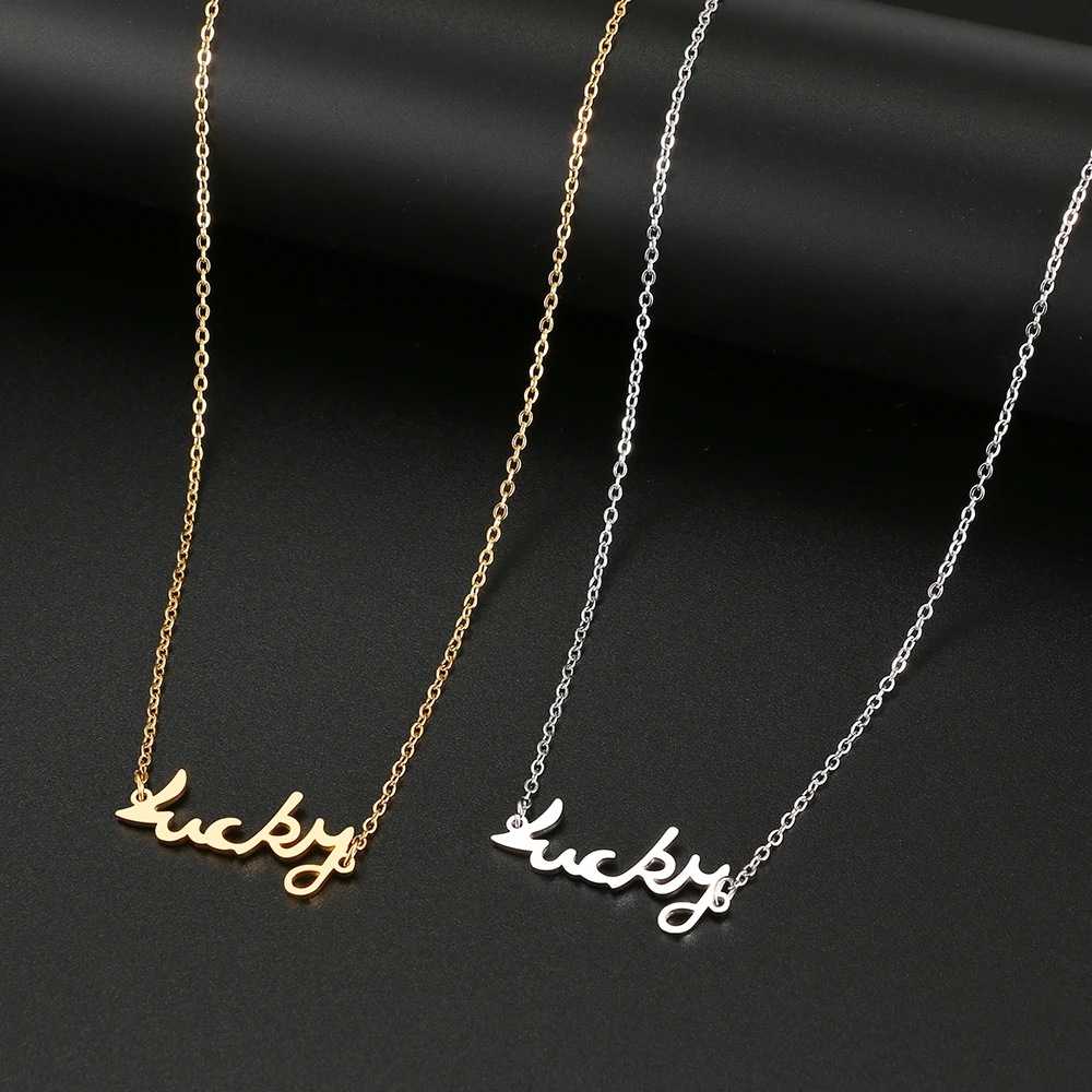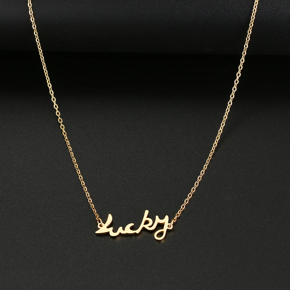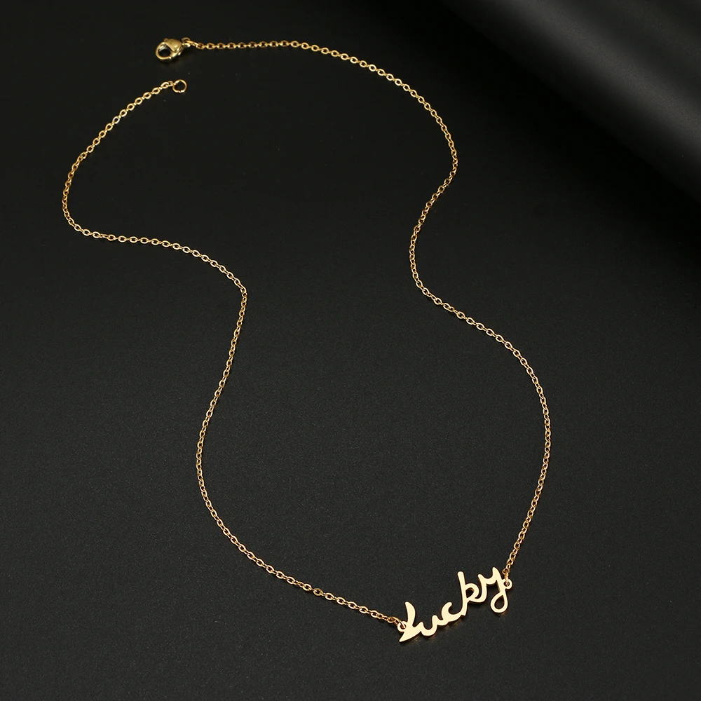 Ожерелья из нержавеющей стали, модные подвески с надписью на удачу, цепочка, чокер, Очаровательное ожерелье для женщин, ювелирные изделия, подарки для вечеринок и девушек