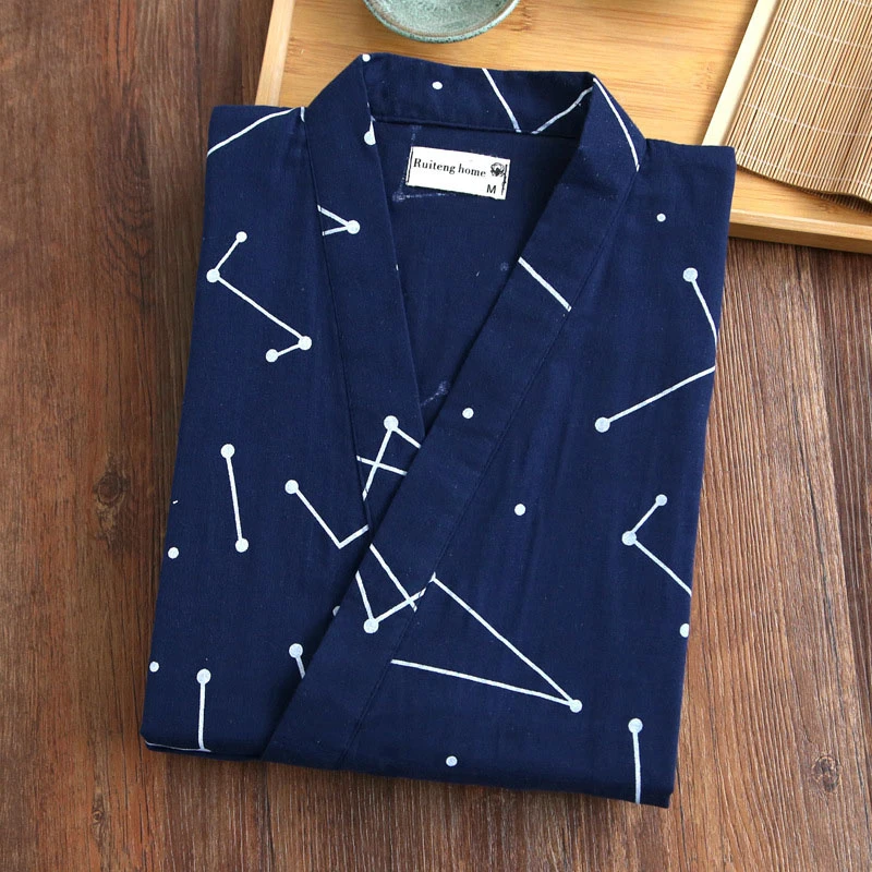 Халат-кимоно мужской, из дышащего хлопка, со звездами, для влюбленн...