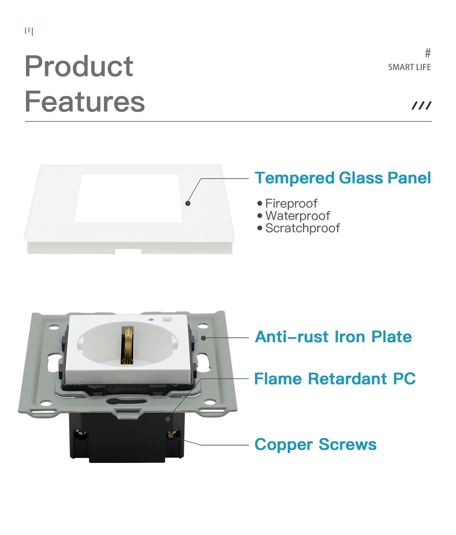 2. Наш Wifi домашний разъем и переключатель являются огнеупорными и водонепроницаемыми. Защита от электрического удара для вашей семьи.
