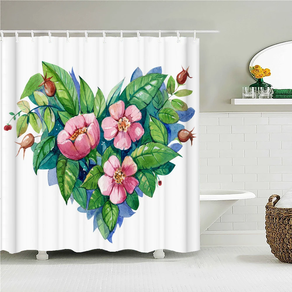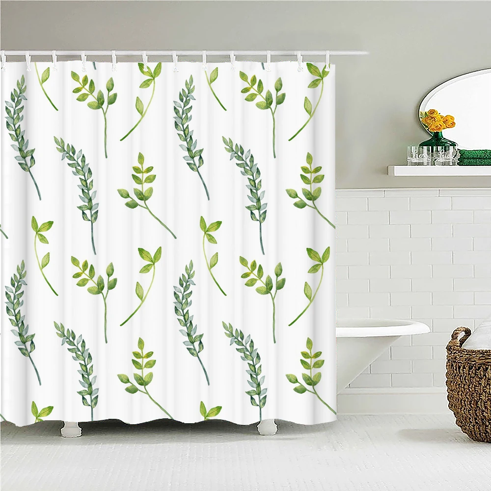 Занавеска для душа, с цветами, зелеными растениями, 3d, водонепрони...
