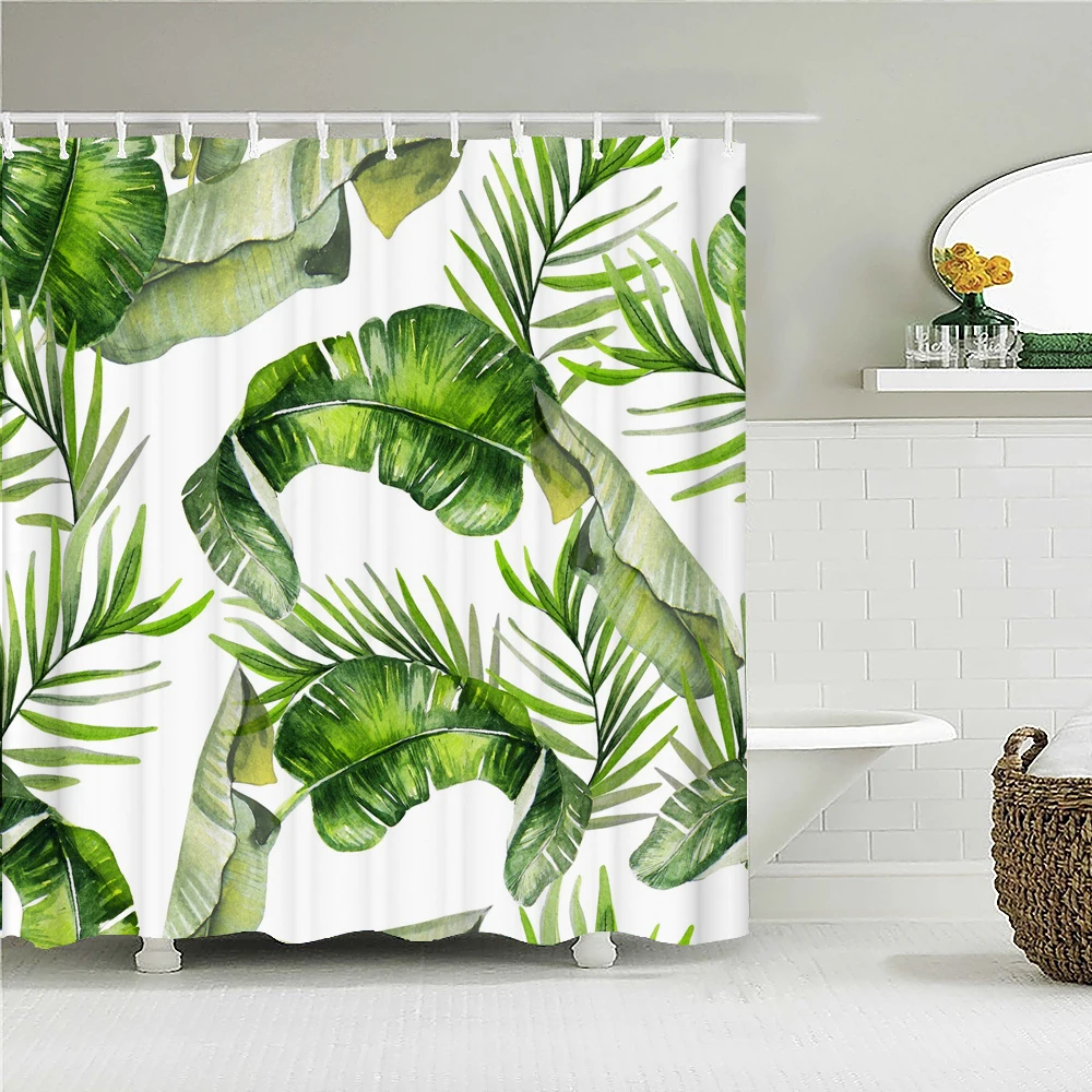 Занавеска для душа с узором в виде пальмовых листьев, водонепроница...