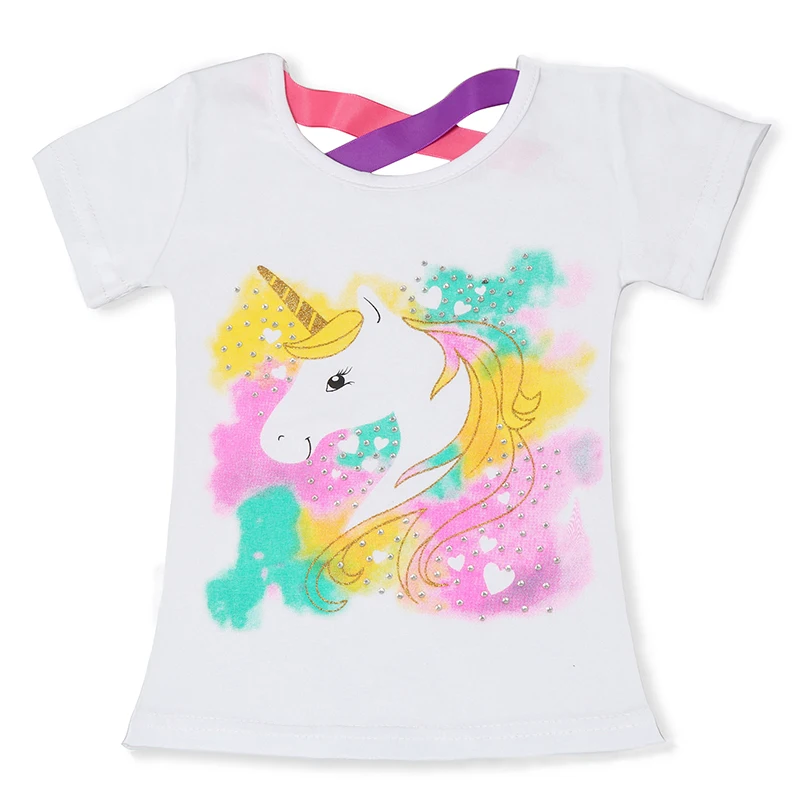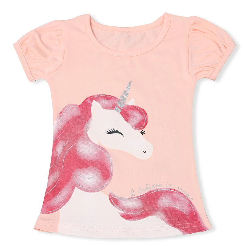 Летняя футболка с рукавом, футболка для девочек с крышками, единоро...