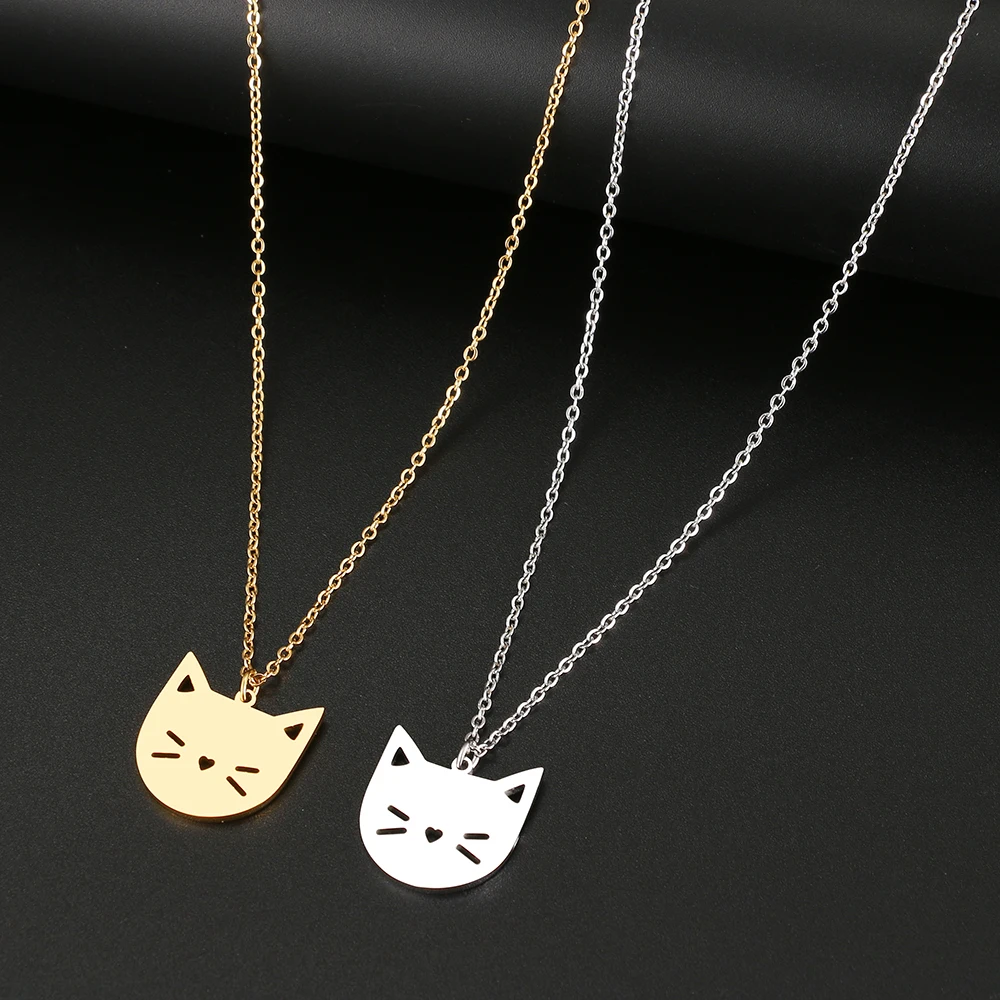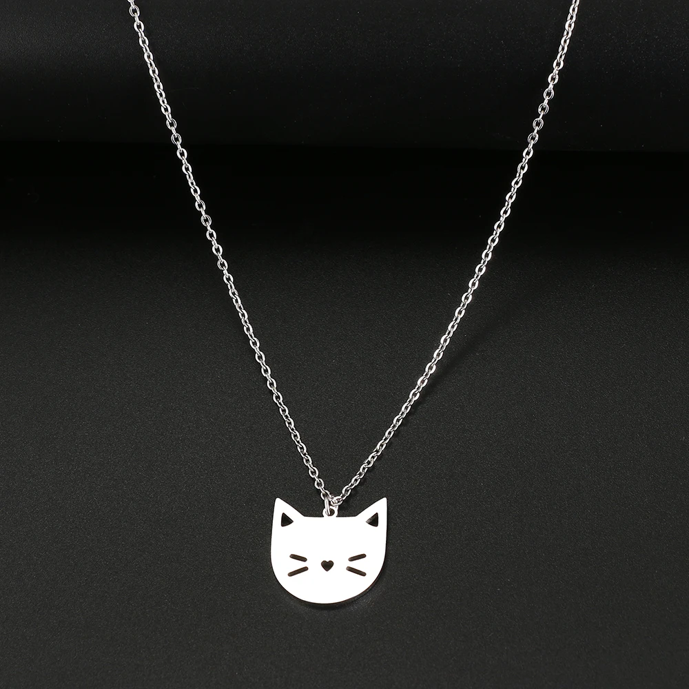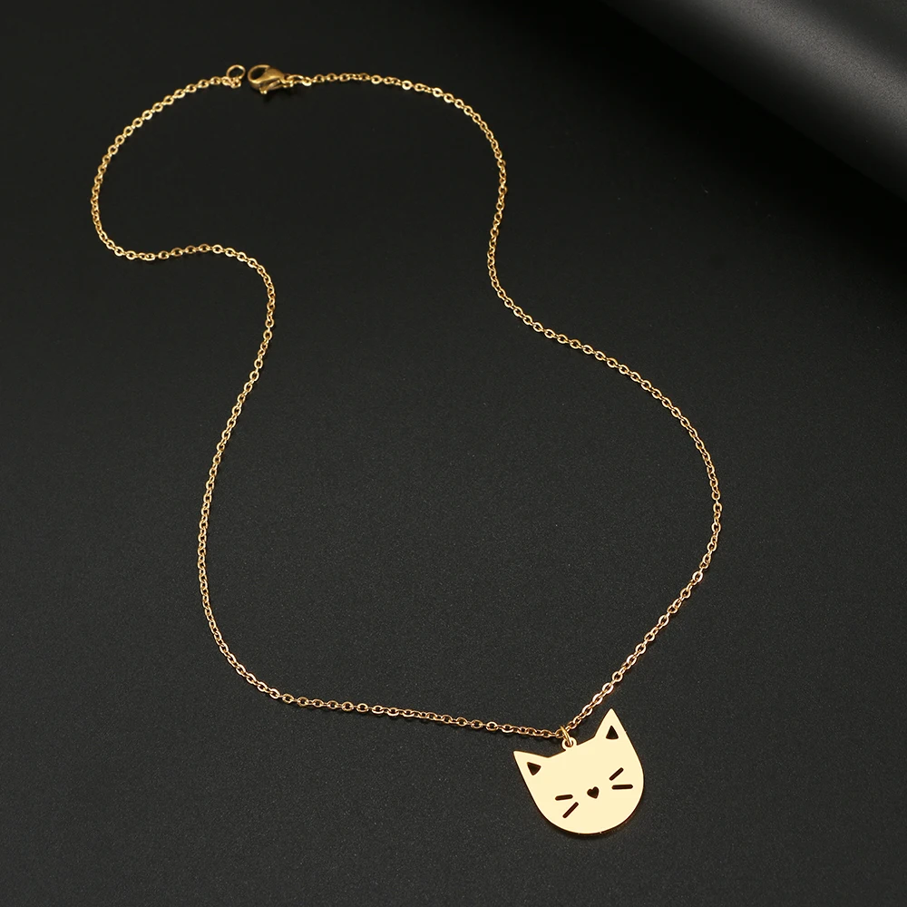 Ожерелья из нержавеющей стали, милый мультяшный котенок, модные подвески, цепочка, чокер, Очаровательное ожерелье для женщин, ювелирные изделия, подарки Вечерние