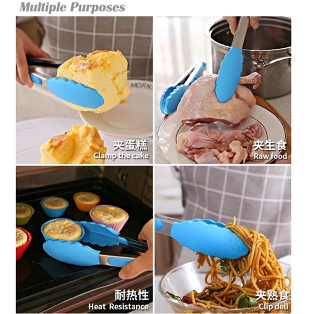 Нескользящий кухонный зажим, силиконовые щипцы из нержавеющей стали...