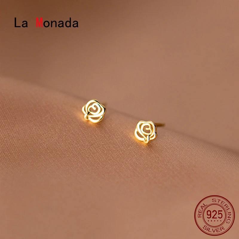 Затычки для ушей: 4 пластиковые затычки для ушей-2 серебряныеПосылка: Пластик коробка (3,5 см * 3,5 см * 1,8 см) в один пакет из пузырчатой пленки (13 см * 15 см)Ла Monada серьги-гвоздики 925 стерлингового серебра 925 маленький полые розы, цветы серебряные серьги для женщин серебро держать пирсинг для девочек18k золото, Платиновое покрытие