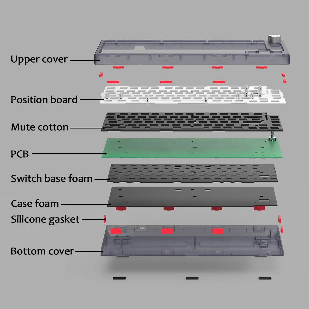 Особенности:-Hotswap клавиатура DIY Kit. Пользовательский комплект оснащен горячими заменяемыми клеммами, с помощью которых вы можете установить переключатели непосредственно без пайки. Он совместим с Cherry MX переключатели, Kailh переключатели и гэтеронских коммутаторов и других 3 pin-код или 5 pin переключатели. Вы можете легко создать свою собственную механическую клавиатуру с помощью этого набора.-Крепление прокладки. Как очень известная структура клавиатуры. Эта техника сделает клавиатуру богатой эластичностью, сделает ее лучше.-Немой хлопок. Высокая конфигурация механической клавиатуры. Устраняет звук полости/увеличивает толщину звука/уменьшает резонанс клавиатуры. Выше этого, мы подготовим 3 немой хлопок для вас, один из них-это Pcb EVA Mute cotton, который поглощает поглощение при наборе текста, а второй-EVA чехол-пена, чтобы уменьшить звук полости. Они могут дать вам лучший опыт слуха и касания.-2 позиции. IK75 обеспечит два типа позиционной платы. Один из них-это стандартная стальная позиционная плата, а другой-позиционная плата ПК, которая является лучшим партнером с креплением на прокладку.-Lubed стабилизатор. Стабилизатор lubed, когда они покидают фабрику, вам не нужно терять время на lubing стабилизатор после того, как вы получили клавиатуру.-Настройка функции ручки. Ручка может быть настроена как Кнопка громкости/кнопка воспроизведения/кнопка остановки с драйвером.-16,8 миллионов RGB подсветки. RGB является таким крутым элементом во время игры. Этот изготовленный на заказ комплект полностью знает ваши потребности и, таким образом, эта модель оснащена RGB SMD светильник. Доступно более 16,8 миллионов ламп. Также в наличии есть два виды музыкальный ритм режим, больше удовольствия в IK75.-Работа с программой драйвера для повторной сборки всех ключей, записи широкого диапазона и драйвера можно использовать в режиме 2,4G.-Тройное подключение. bluetooth 5,0, Тип-C USB-C, 2,4 ГГц тройной режим соединения, дает возможность при использовании клавиатуры для настольного компьютера в беспроводной. Совместимость с windows 2000 и выше, BLE поддерживает WIN8 или выше систему