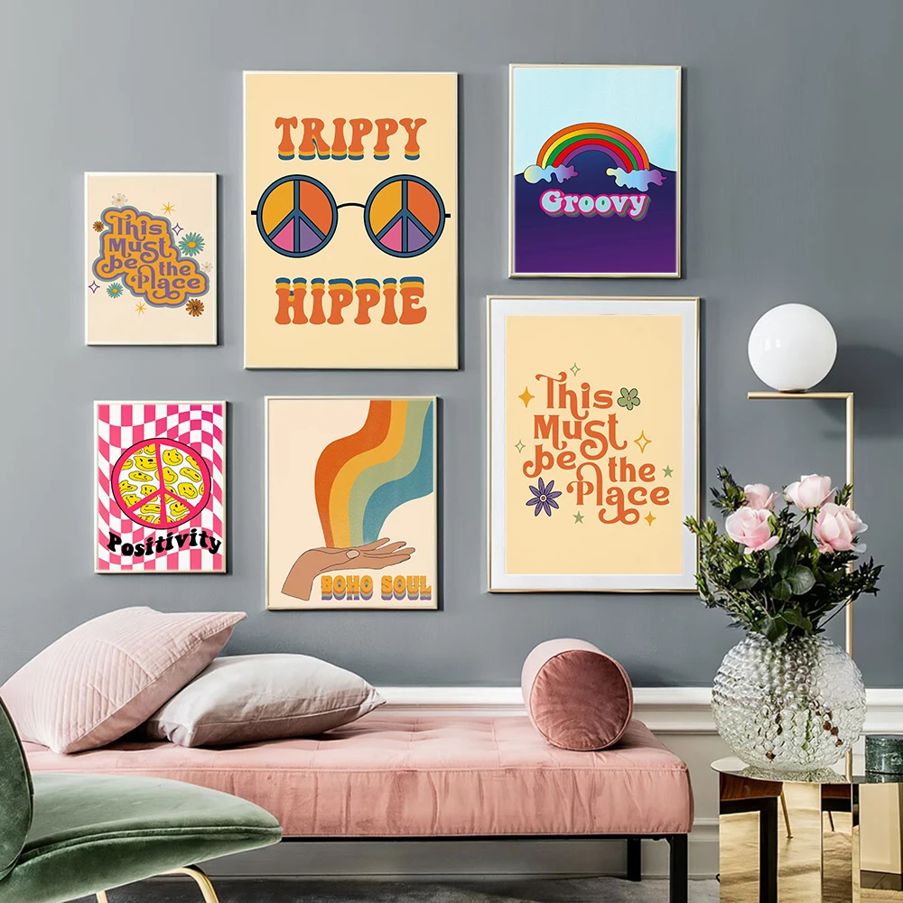70s богемная красочная психоделическая стена искусство Искусство ре...