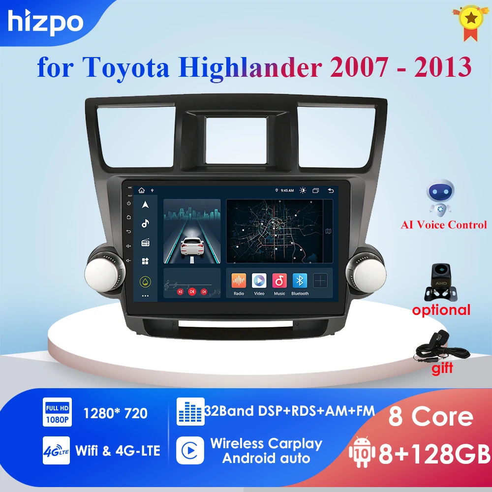 Авторадио монитор 2Din Android головное устройство для Toyota Highlander 2 XU40 2007-2013 автомобильное радио мультимедийный видеоплеер навигатор GPS Carplay