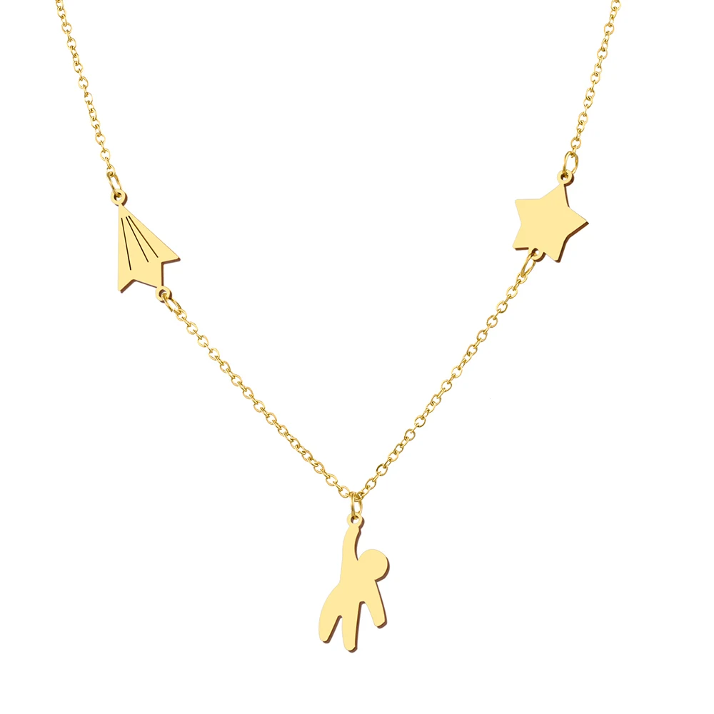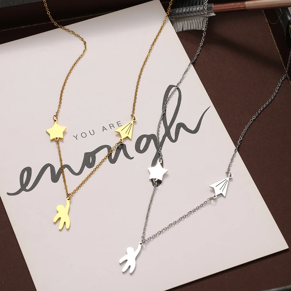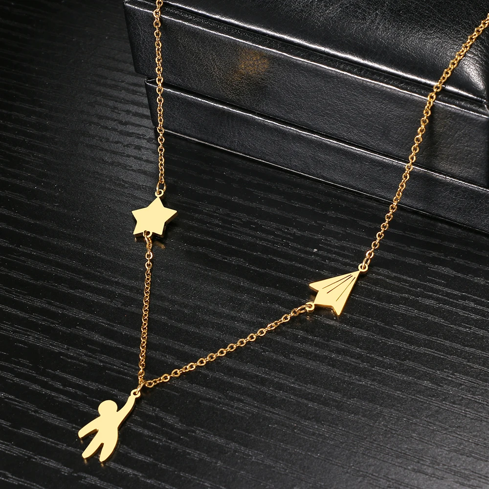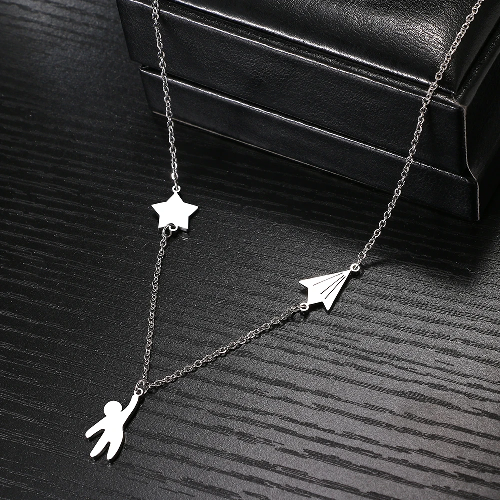 Ожерелья из нержавеющей стали, модные подвески в виде бумажного самолета со звездами, цепочка-чокер, Очаровательное ожерелье для женщин, ювелирные изделия, подарки Вечерние