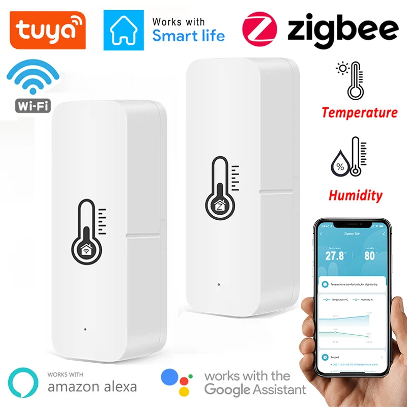 Датчик температуры и влажности Tuya Wi-Fi Zigbee, комнатный гигрометр-контроллер для умного дома, приложение для мониторинга для Alexa Google Home