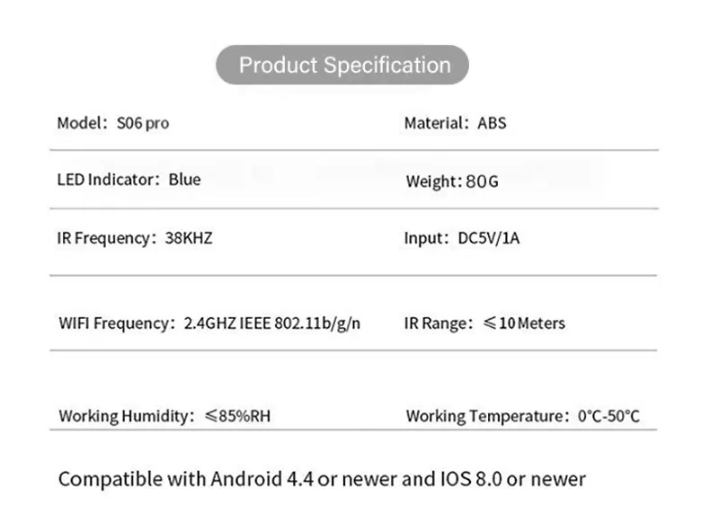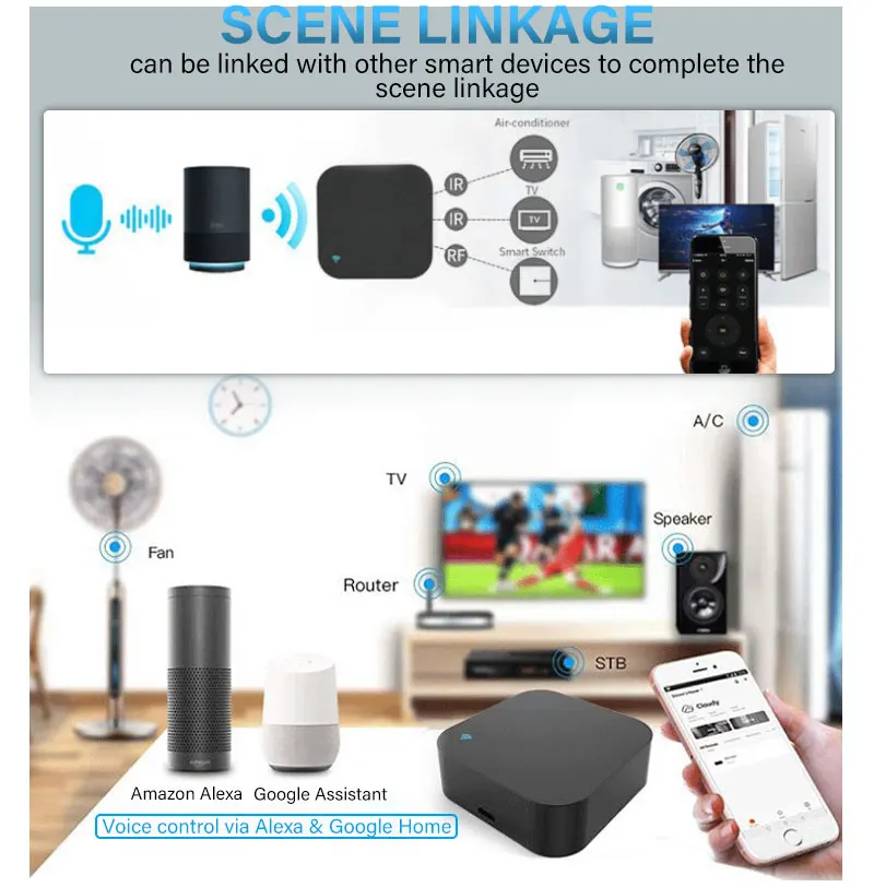 【Поддержка голосового управления 】совместимость с Alexa / Echo, Google Home, голосовое управление телевизором, телеприставка, кондиционер и вентилятор. Устройство поддерживает только 2,4G WiFi.