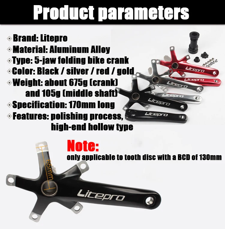 Складной шоссейный велосипед Litepro, полая интегрированная кривошипа среднего вала, для BMX, подходит для одного диска bcd130 мм