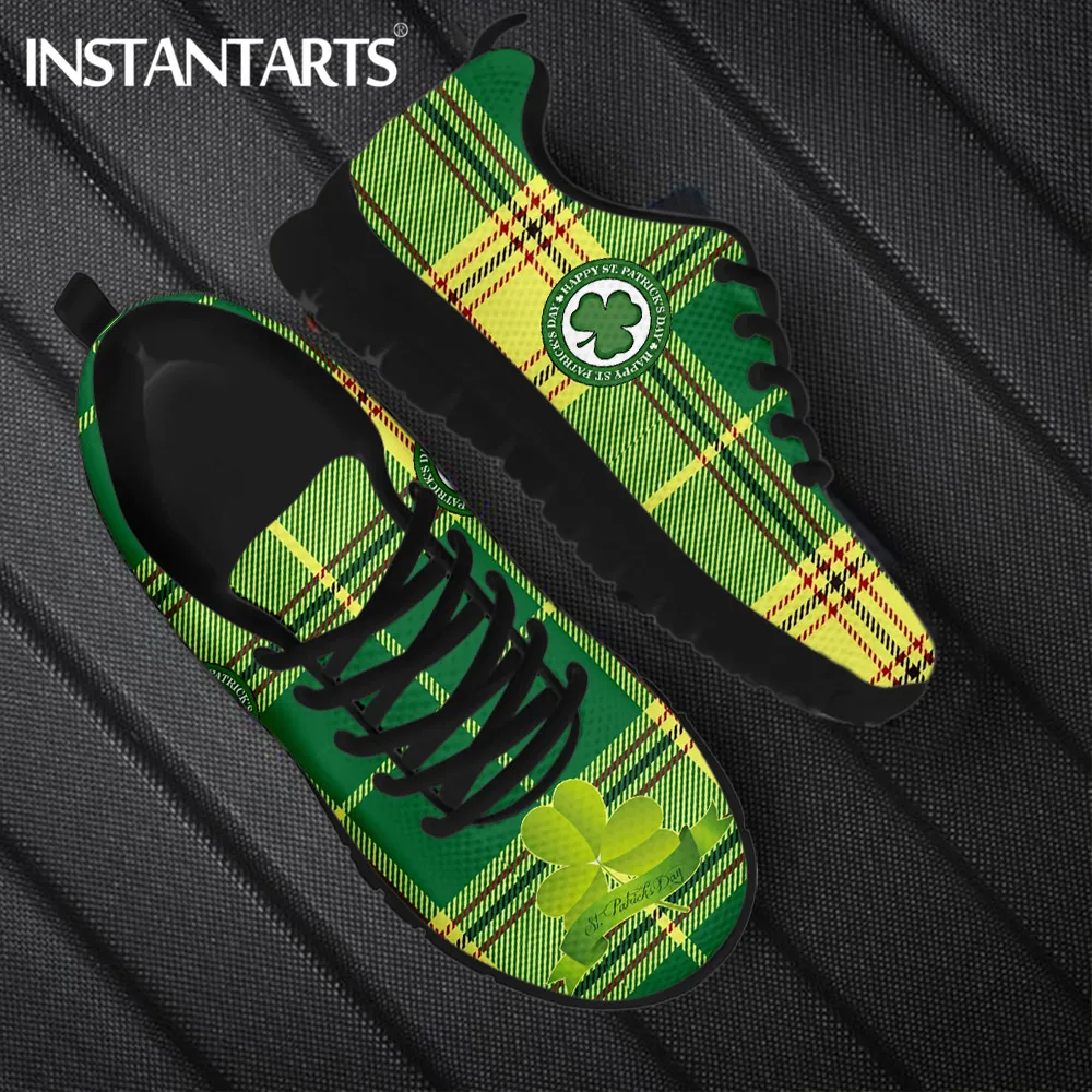 Женские мягкие кроссовки INSTANTARTS, зеленые клетчатые туфли на плоской подошве с принтом Св. Патрика, дышащая обувь, 2022