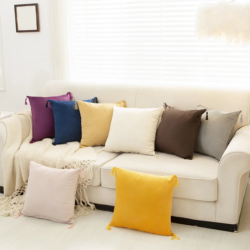 Бархатная наволочка 40*40 см с кисточкой, однотонная квадратная наволочка для дивана, наволочка для гостиной, спальни, домашний декор