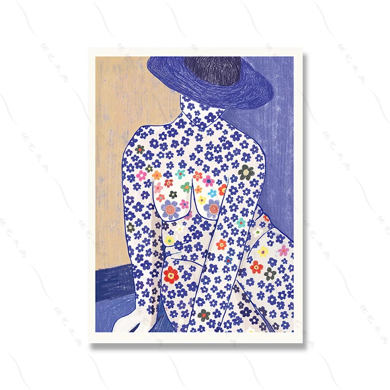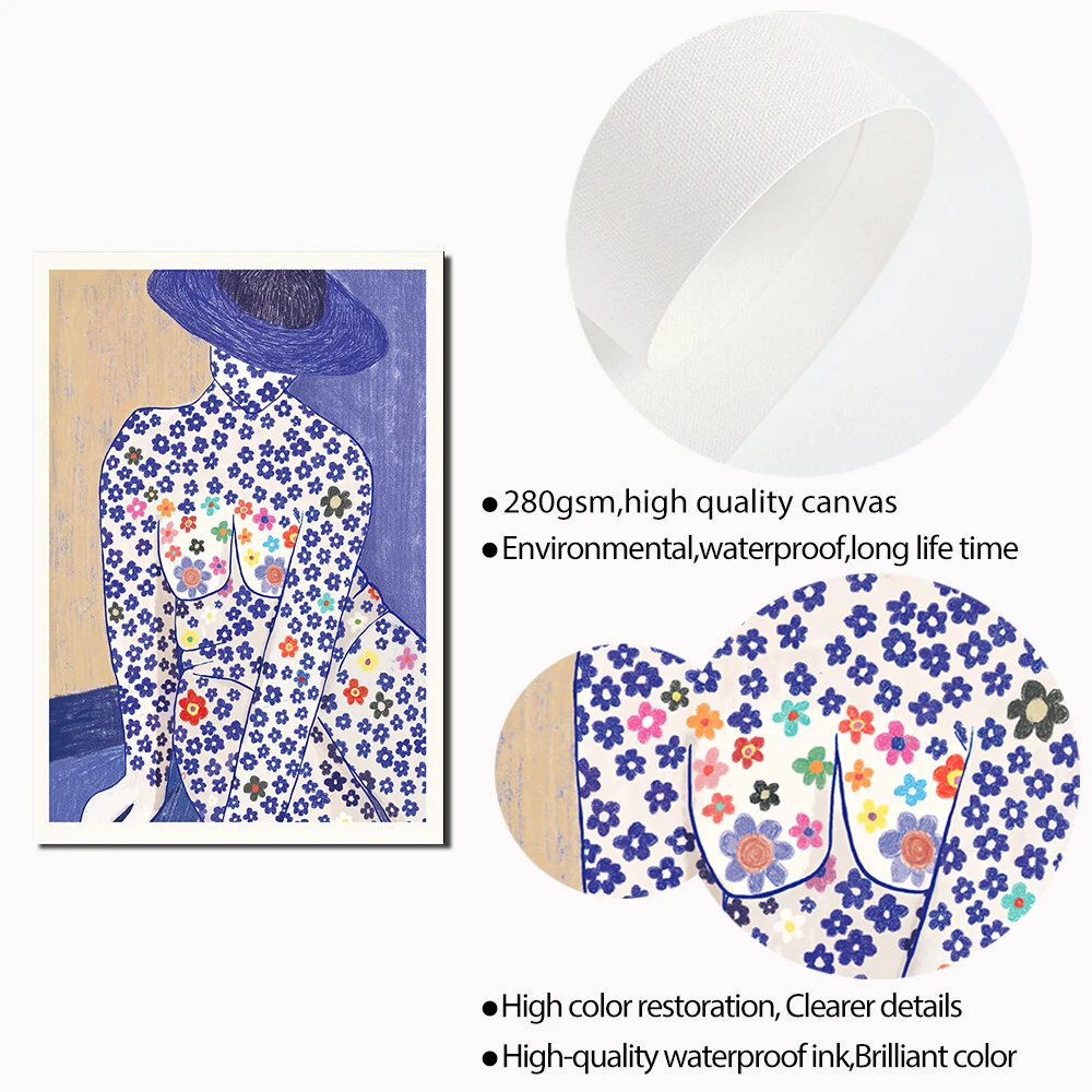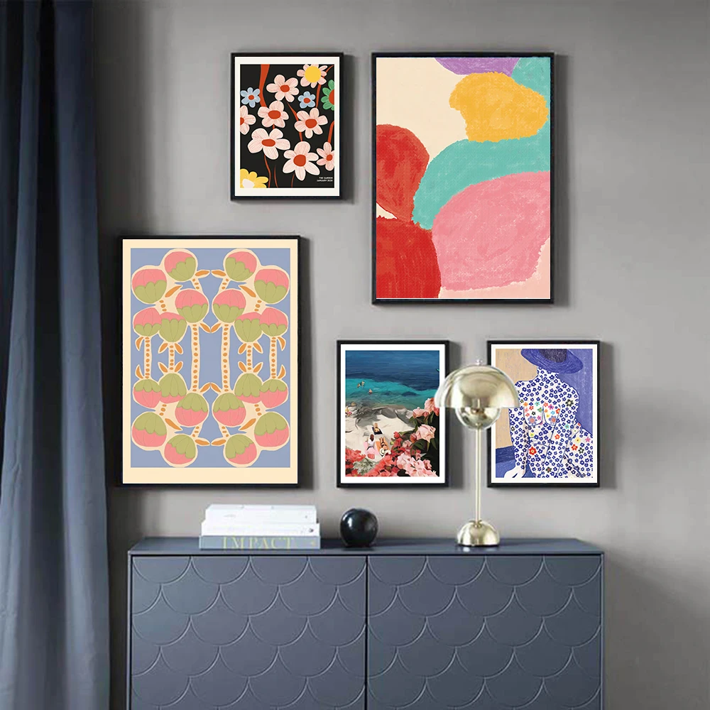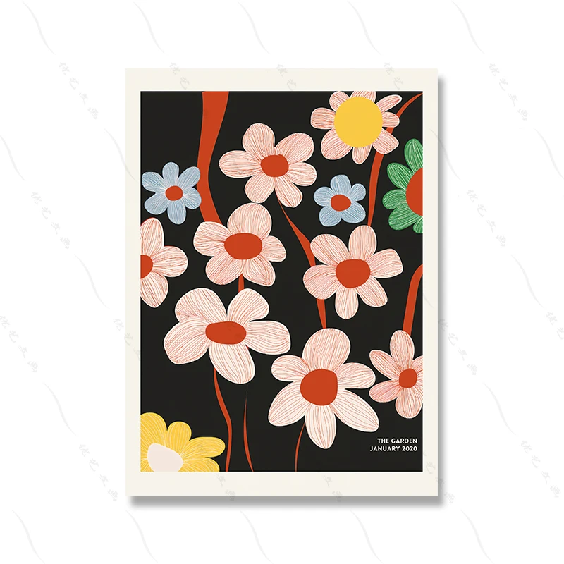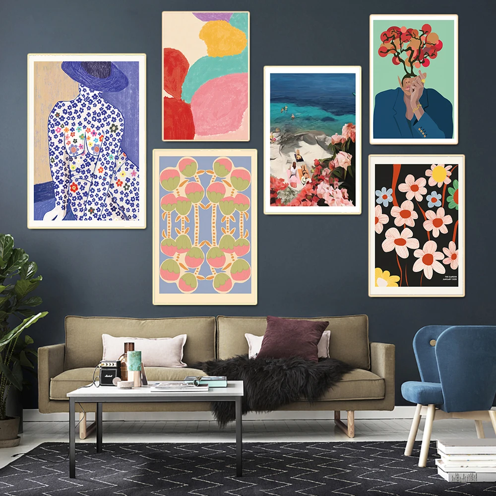 Постер в стиле ретро, абстрактная фигурка цветка, настенная Картина на холсте для гостиной, Цветочный декор, винтажные максимально красочные картины