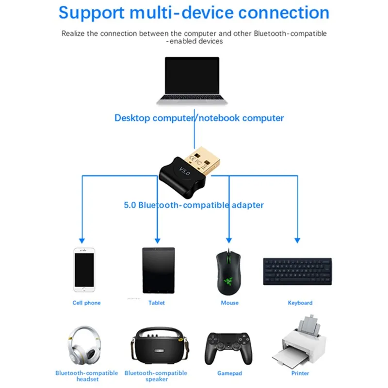 5,0 Bluetooth-совместимый адаптер USB-передатчик для ПК, компьютера, приемника, ноутбука, наушников, аудиопринтера, приемника передачи данных