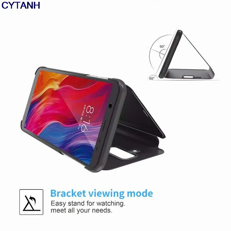 Зеркальный откидной кожаный чехол для Samsung Galaxy A6 A7 A9 2018 ...