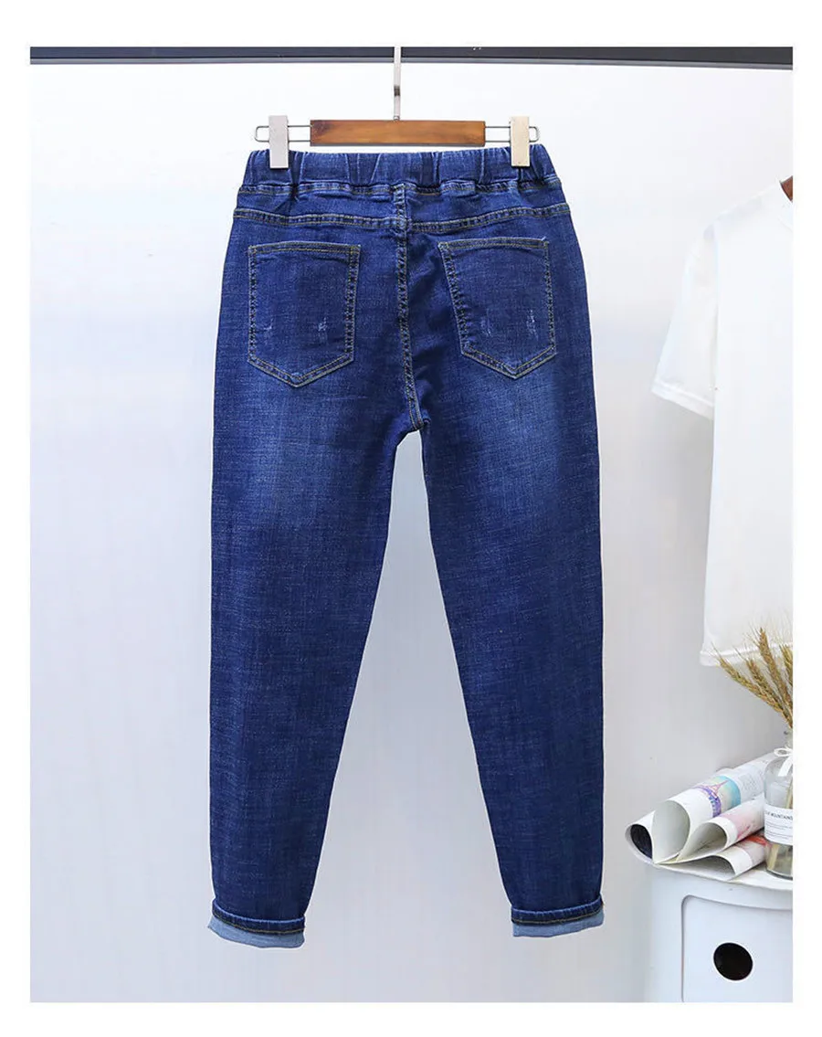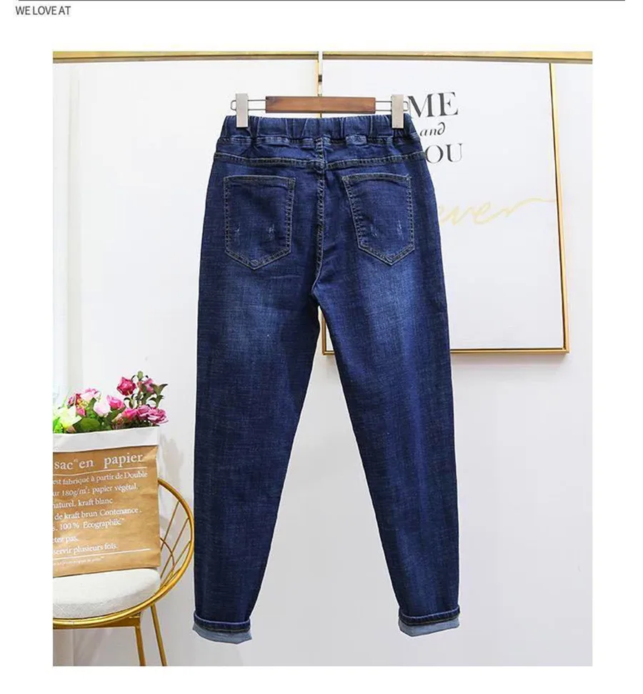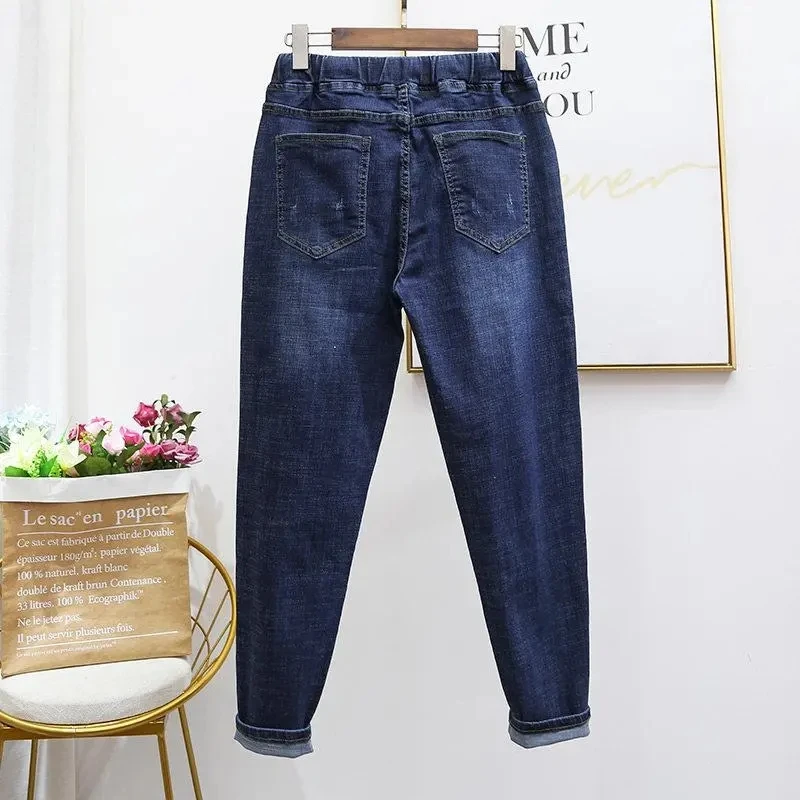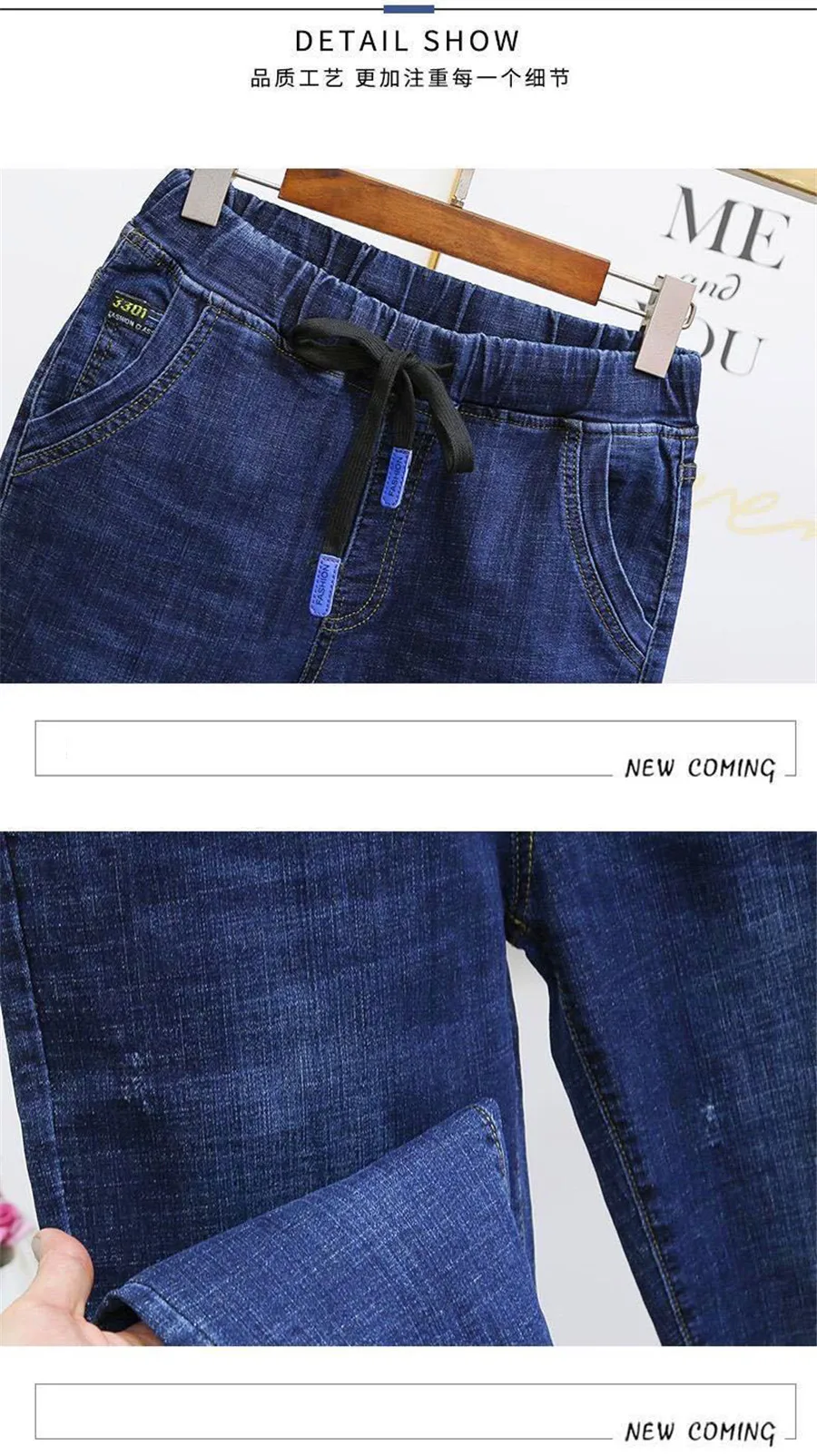 Женские джинсы с высокой талией, эластичные повседневные брюки-султанки в Корейском стиле, джинсовые мешковатые брюки с эластичным поясом, Новинка лета 22