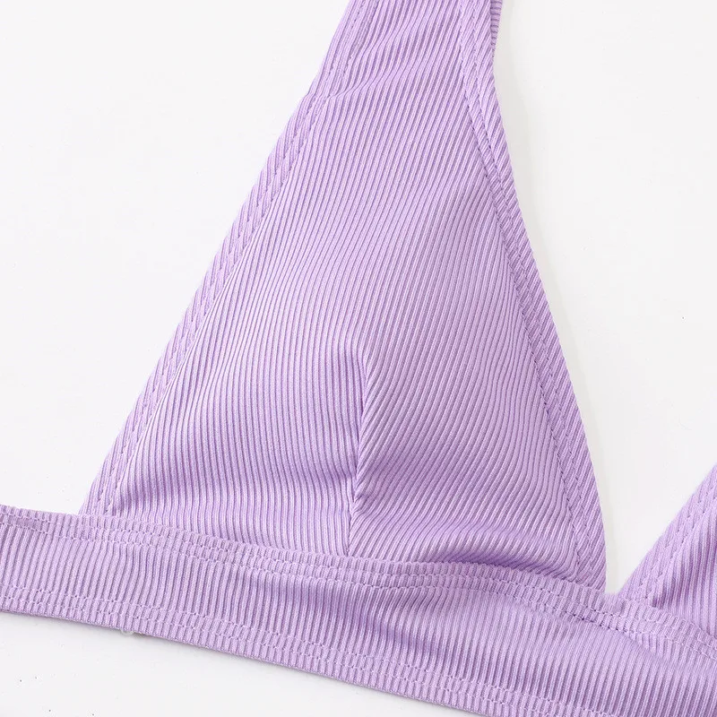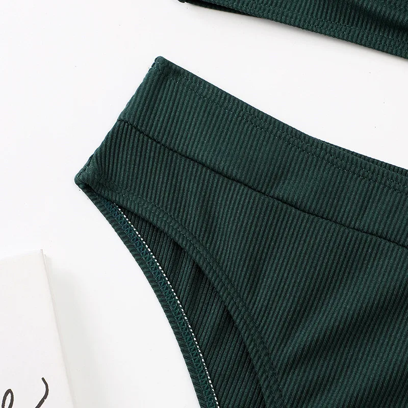 2022 летний комплект бикини для женщин, новый соблазнительный купальник в рубчик с V-образным вырезом и высокой талией, однотонный купальный костюм пуш-ап, Женская пляжная одежда, купальник