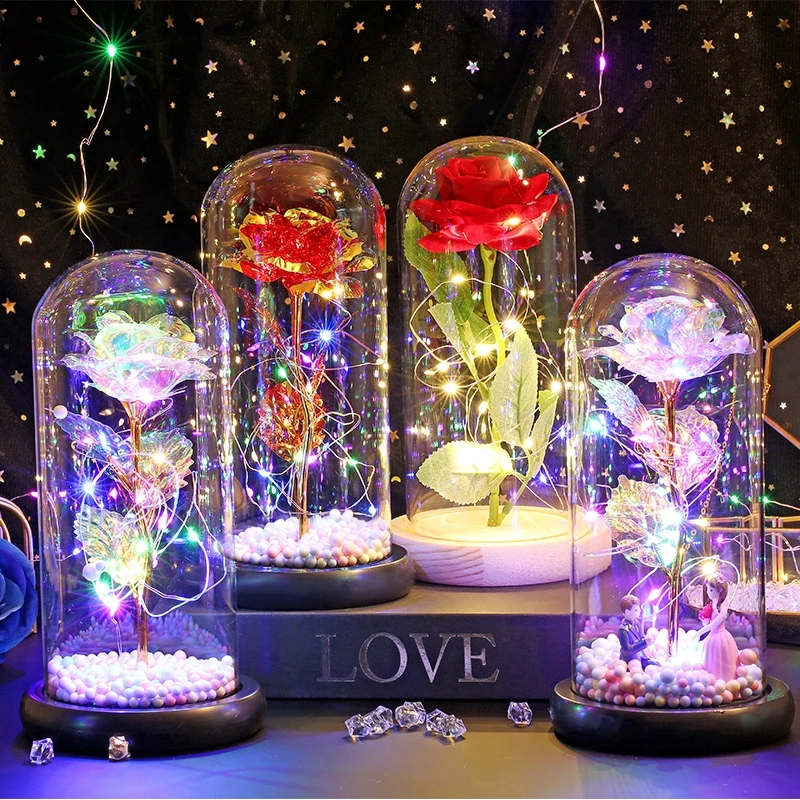 Светодиодная Роза, вечный искусственный цветок с куполом, Сказочная гирлянда, Рождество, День Святого Валентина, подарок для матери, ребенка, украшение для дома