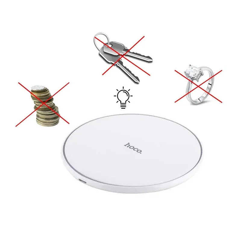 Зарядное устройство Hoco CW6 в прочном монолитном корпусе позволяет быстро зарядить батарею вашего смартфона без кабеля. С ее помощью можно заряжать практически любые устройства, поддерживающие Qi технологию. Эффективность преобразования энергии достигает 72%, что позволяет ей наравне соперничать с проводными аналогами.Hoco CW6 - это необходимый аксессуар для владельцев iPhone 8/8Plus и iPhone X. Во время зарядки разъем lightning остается свободным, поэтому можно подключить наушники и прослушивать музыку, отвечать на звонки и уведомления.Устройство имеет надежную систему защиты от перегрева, перегрузок и скачков напряжения, делая зарядку гаджетов не только быстрой, но и безопасной. С помощью Hoco CW6 можно заряжать без провода любые устройства, поддерживающие Qi технологию. Hoco CW6, отлично вписывается в интерьер благодаря компактному ультратонкому размеру и оригинальному дизайну, легко поместится как на рабочем столе, так и в вашей сумке. Силиконовое кольцо снизу предотвращает скольжение по столу.