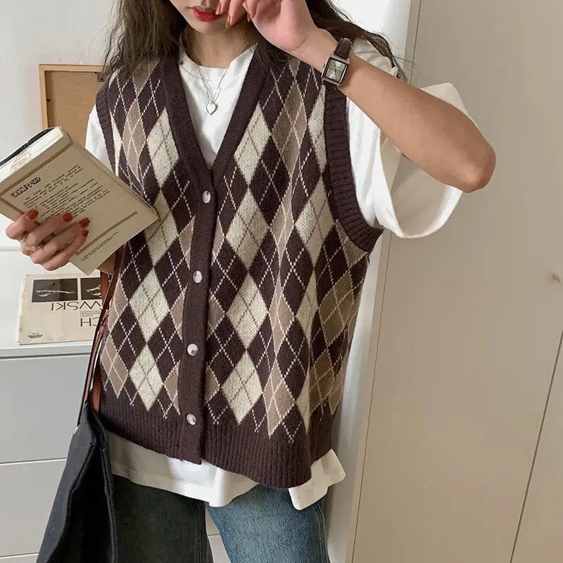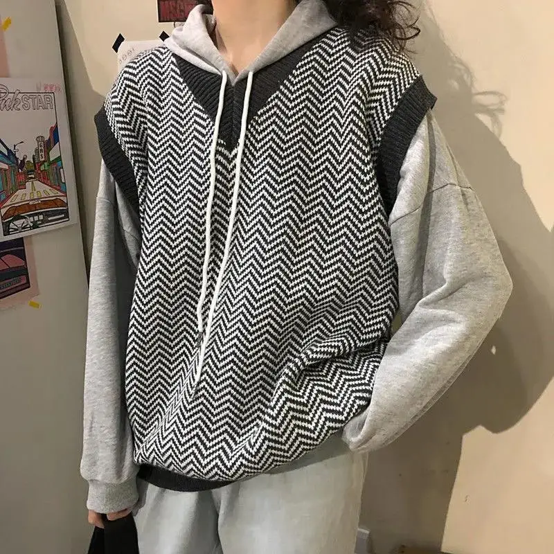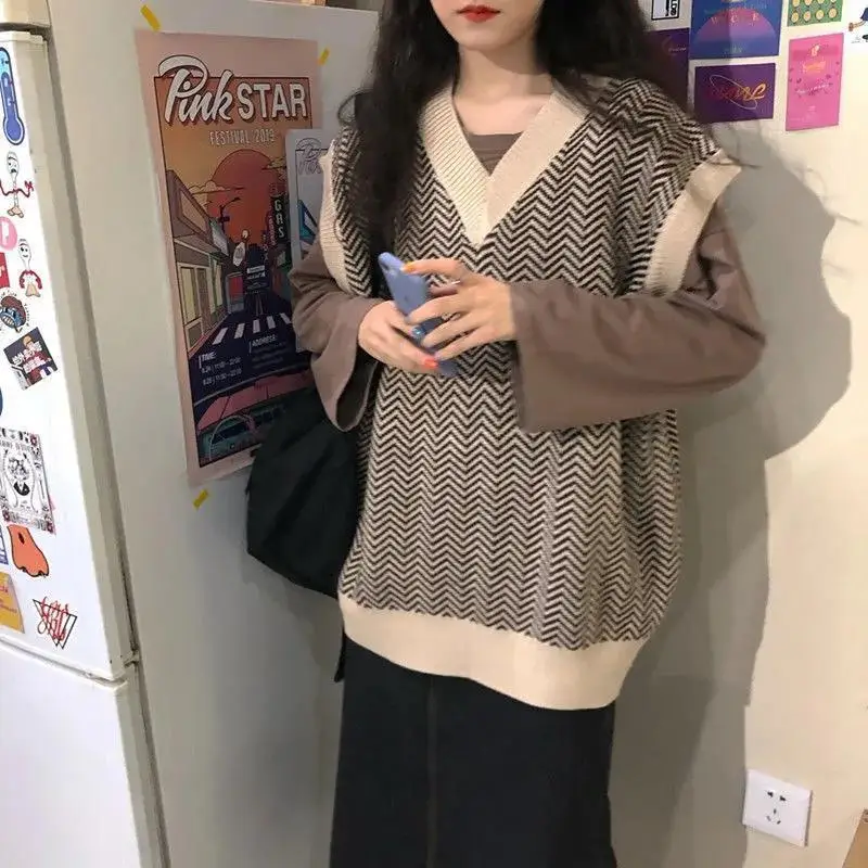 Вязаный винтажный свитер в Корейском стиле, вязаный жилет, Женский пуловер оверсайз без рукавов, свитеры, джемпер, женский жилет, Топ Unif 2021