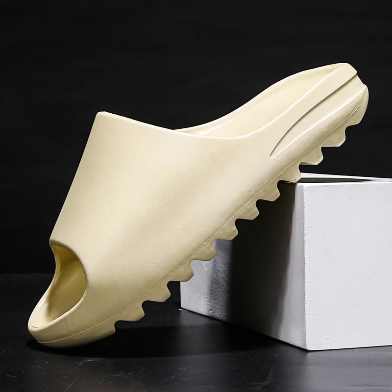 Мужские летние шлепанцы YZY, дышащие крутые пляжные сандалии, шлепанцы с открытым носком, легкие белые шлепанцы, цвет черный, 55-46