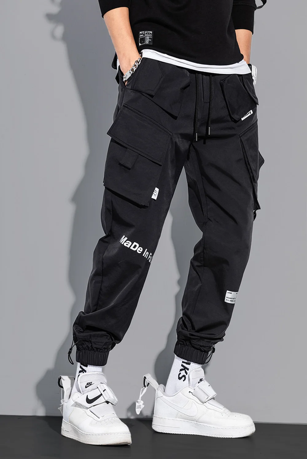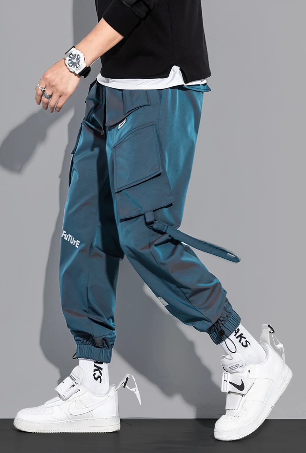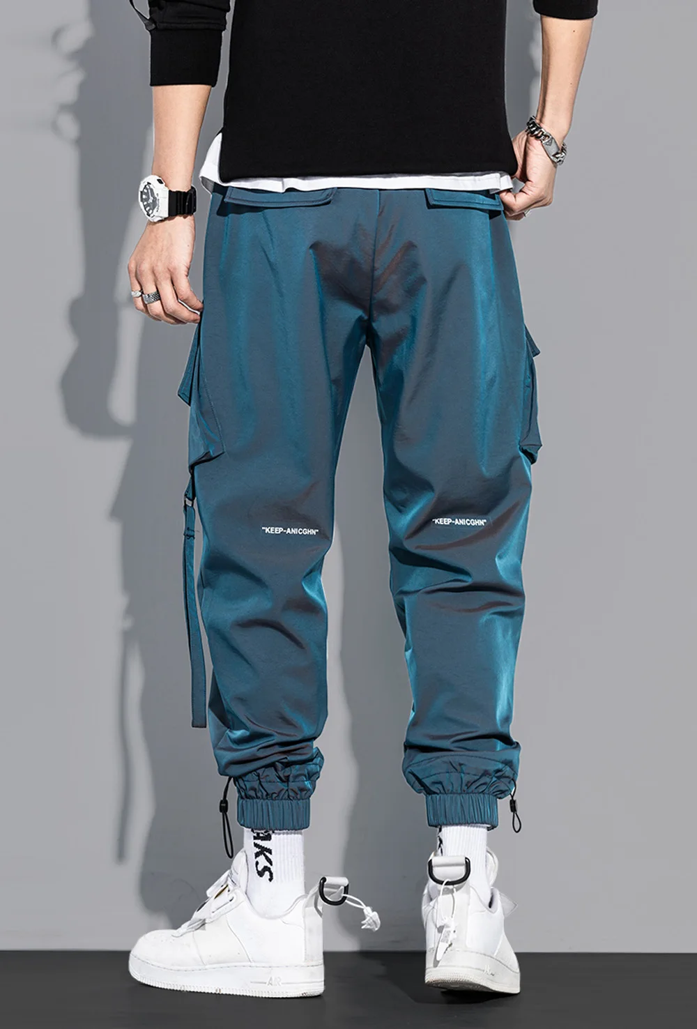 Брюки-карго мужские повседневные, шаровары в Корейском стиле, свободные штаны, уличная одежда, светоотражающие Techwear, черные