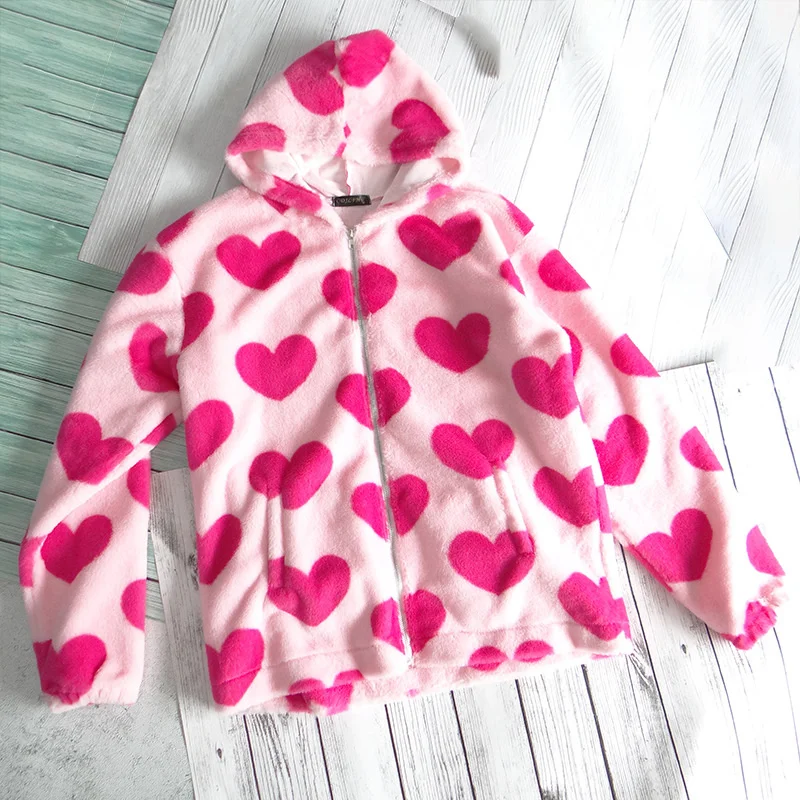 Женская плюшевая куртка в стиле Харадзюку с принтом в виде сердца, ...